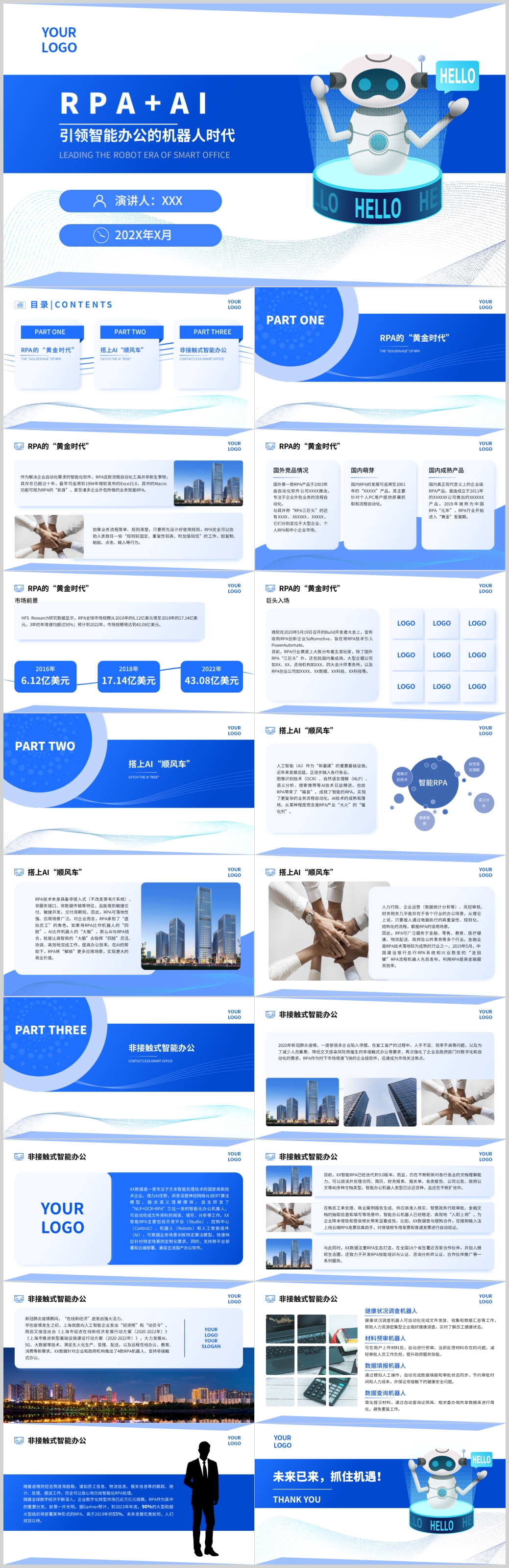 蓝色简约商务科技引领智能办公的机器人时代ppt模板