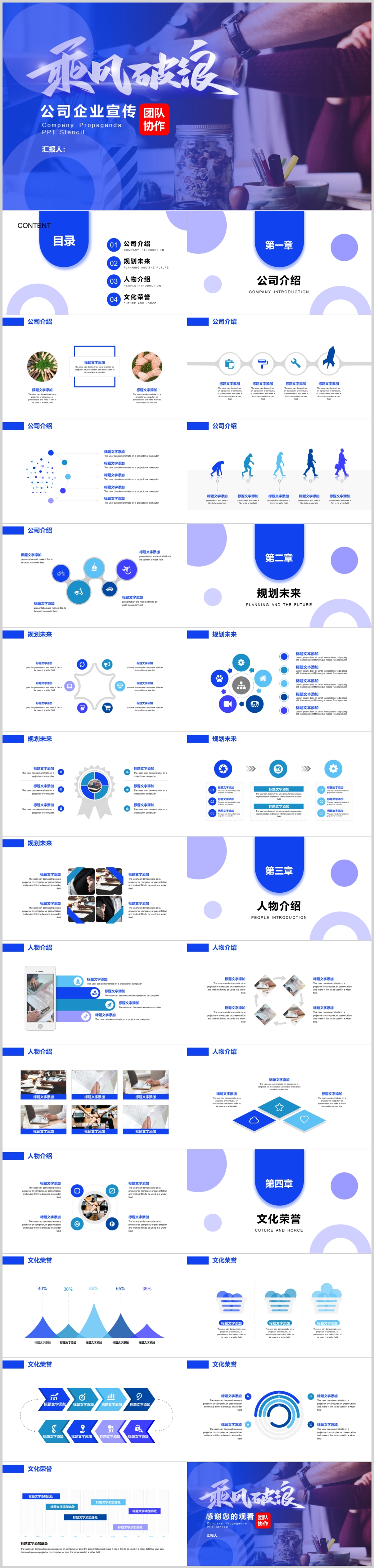 蓝色商务乘风破浪年终总结工作计划ppt模板