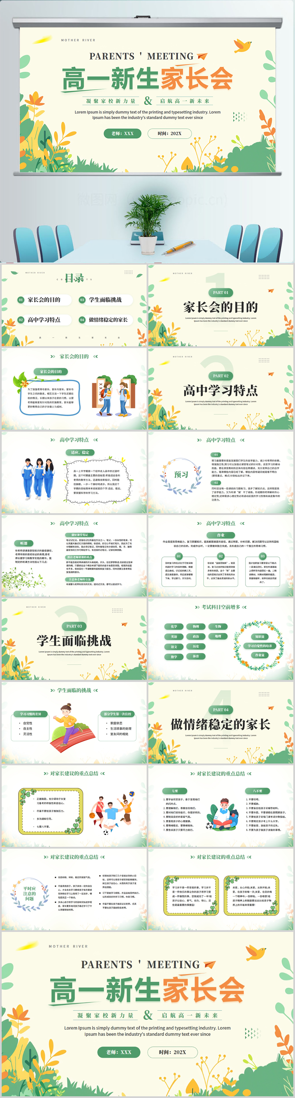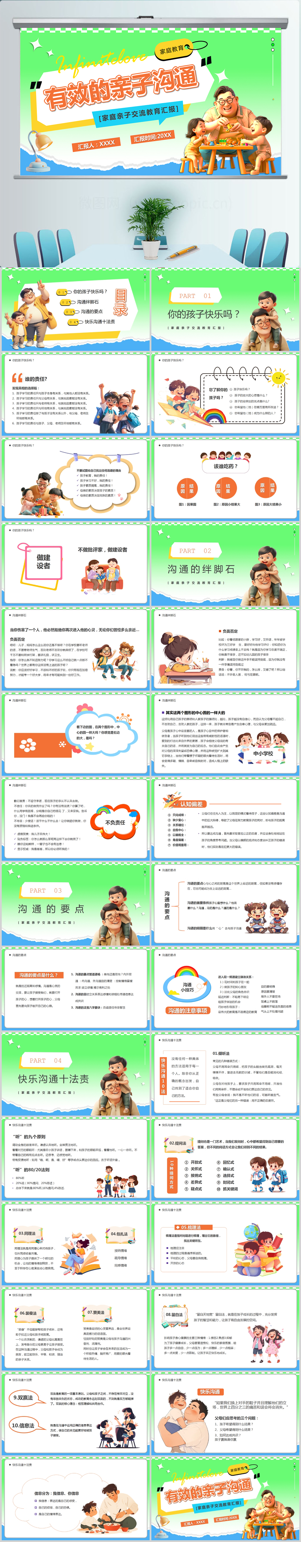 卡通有效的亲子沟通儿童家庭教育PPT模版设计