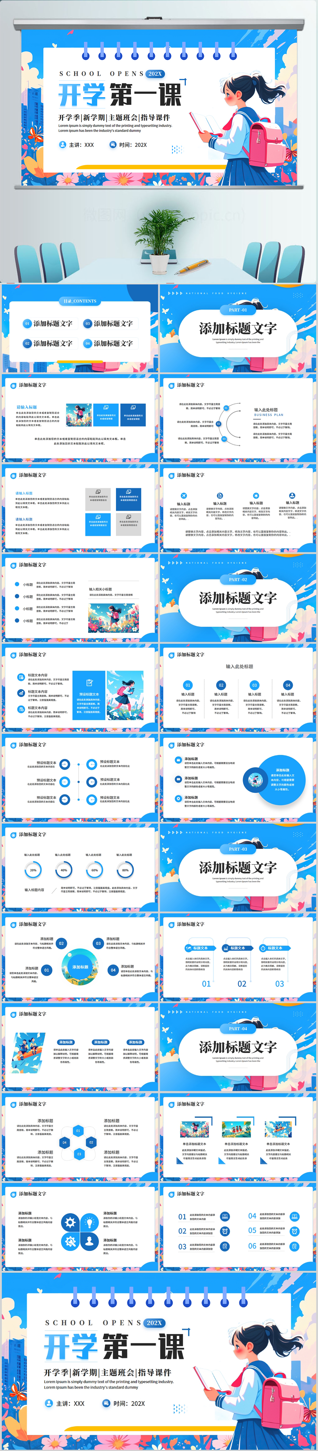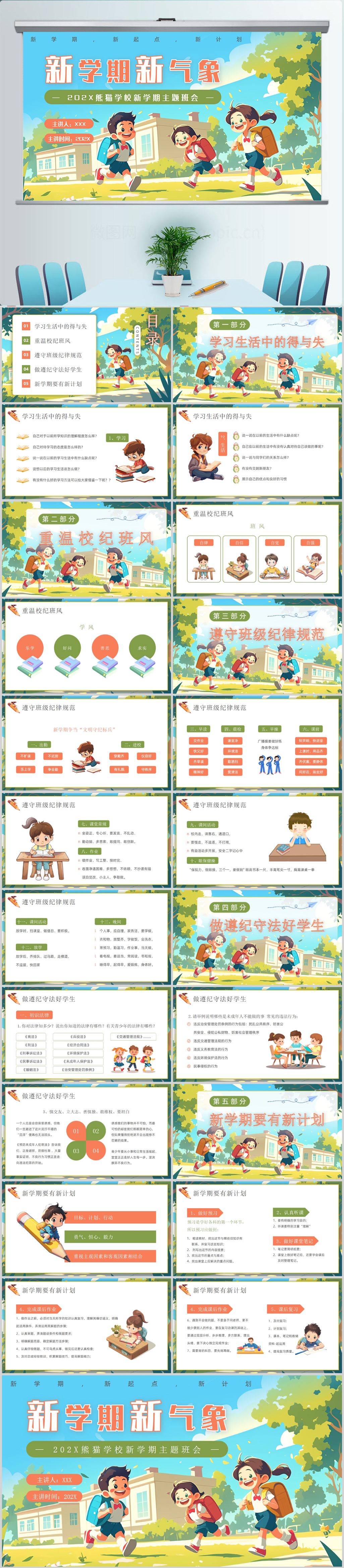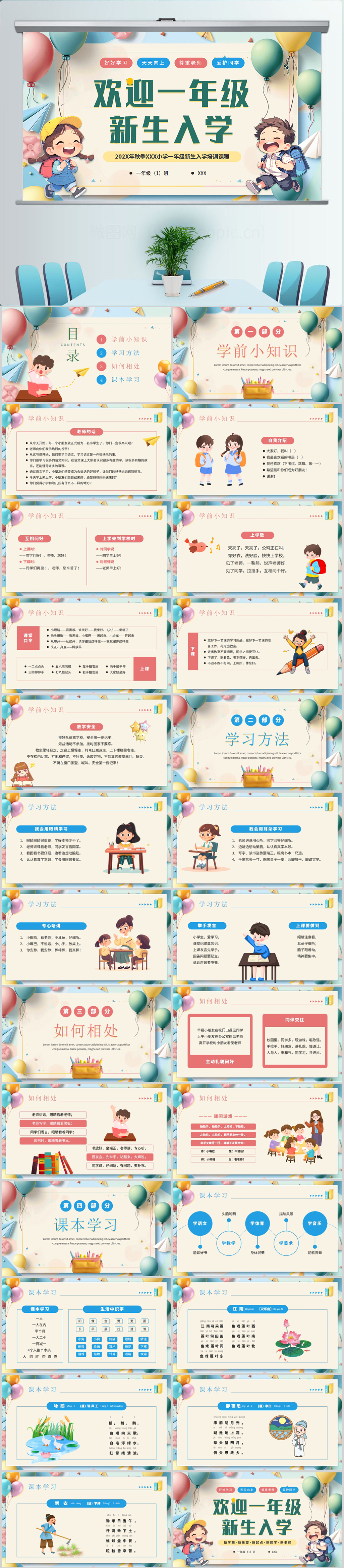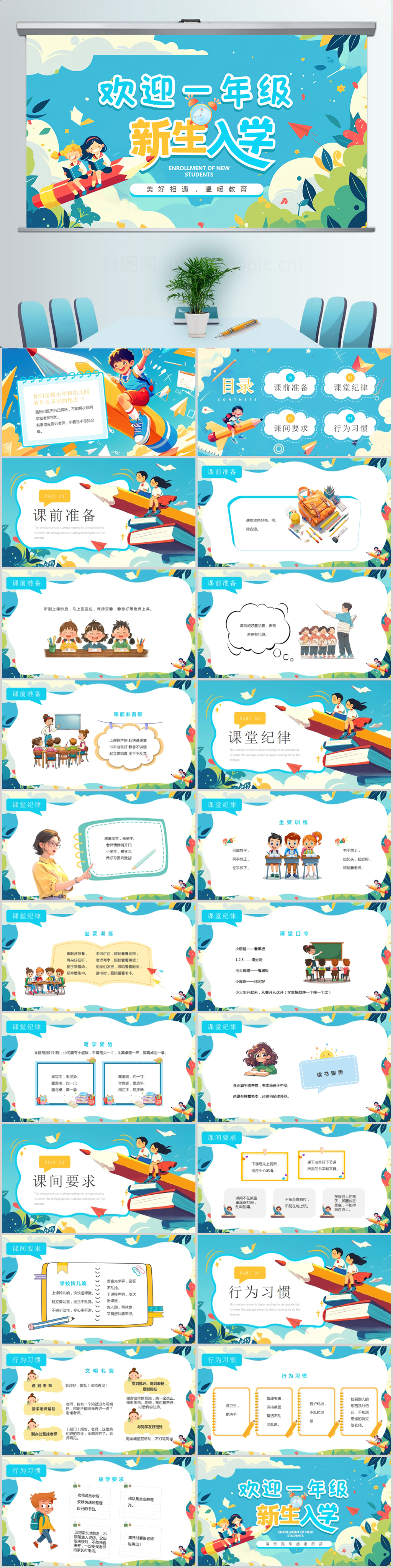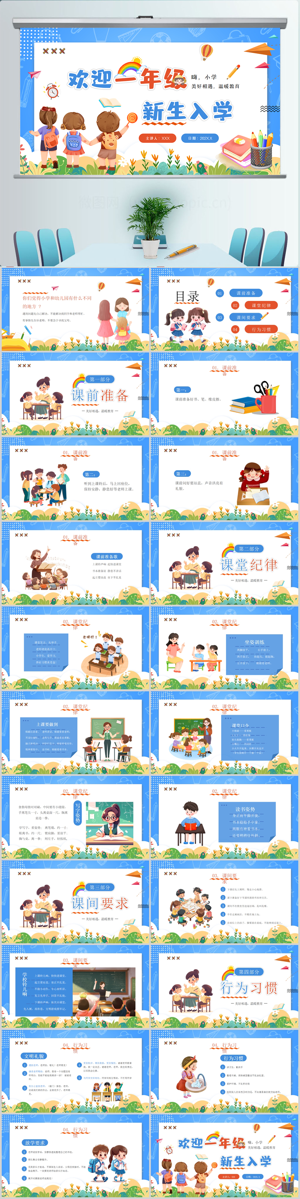 卡通开学第一课小学一年级新生入学培训ppt模板设计