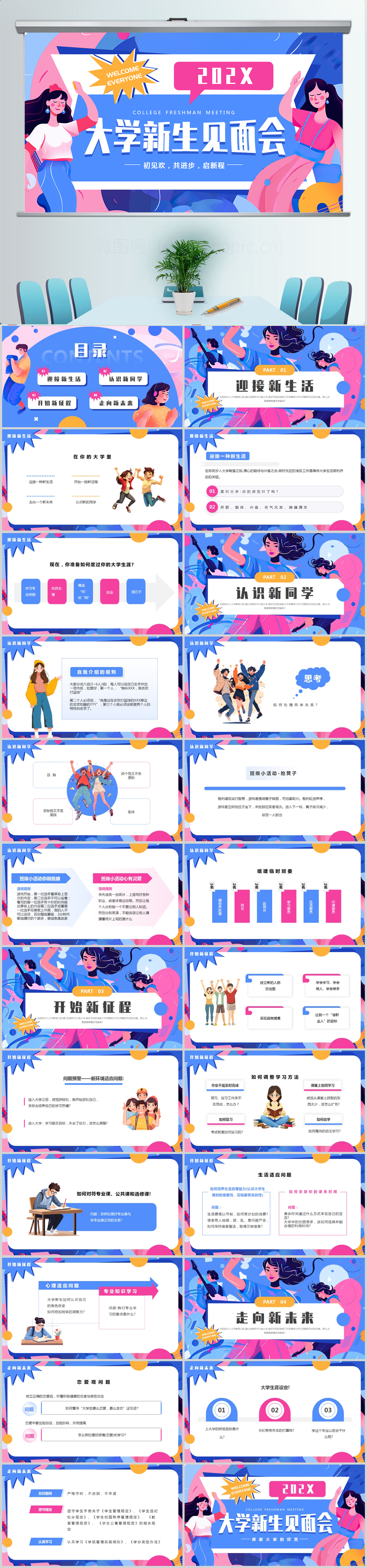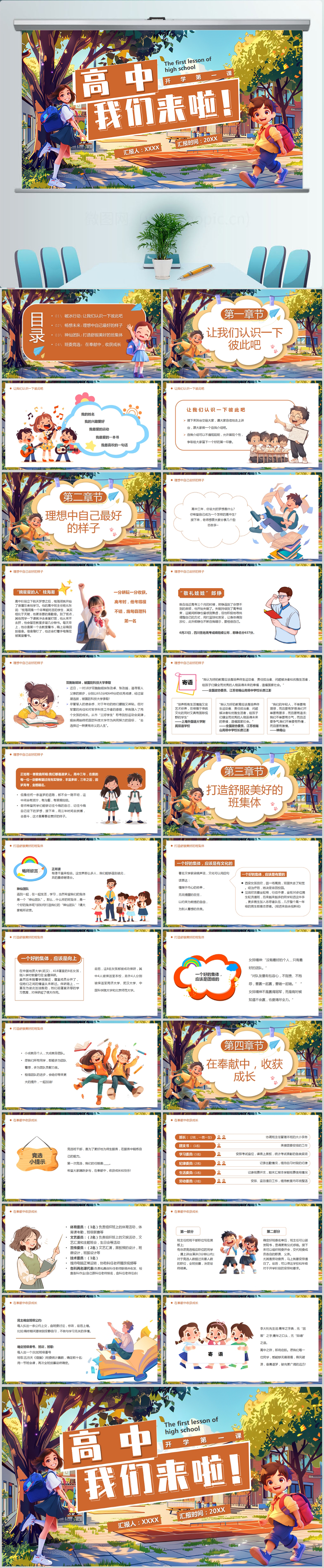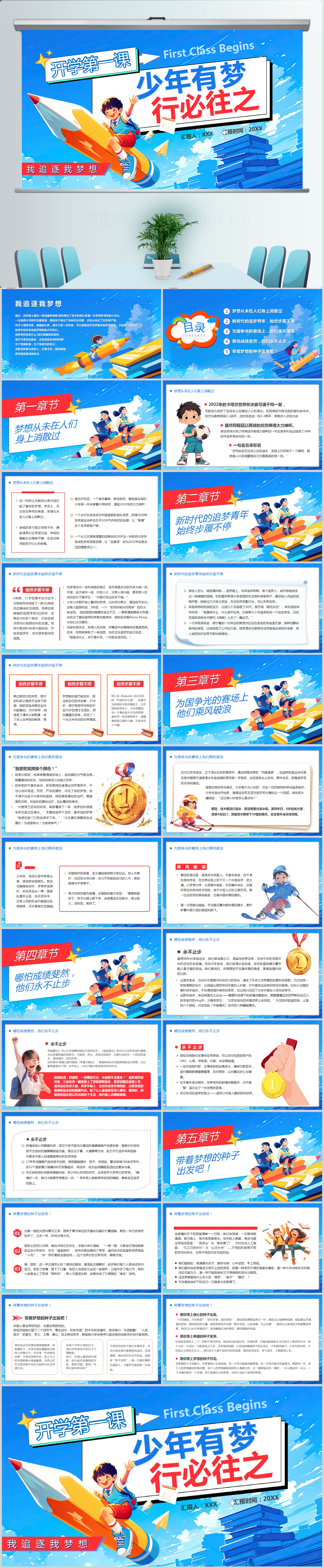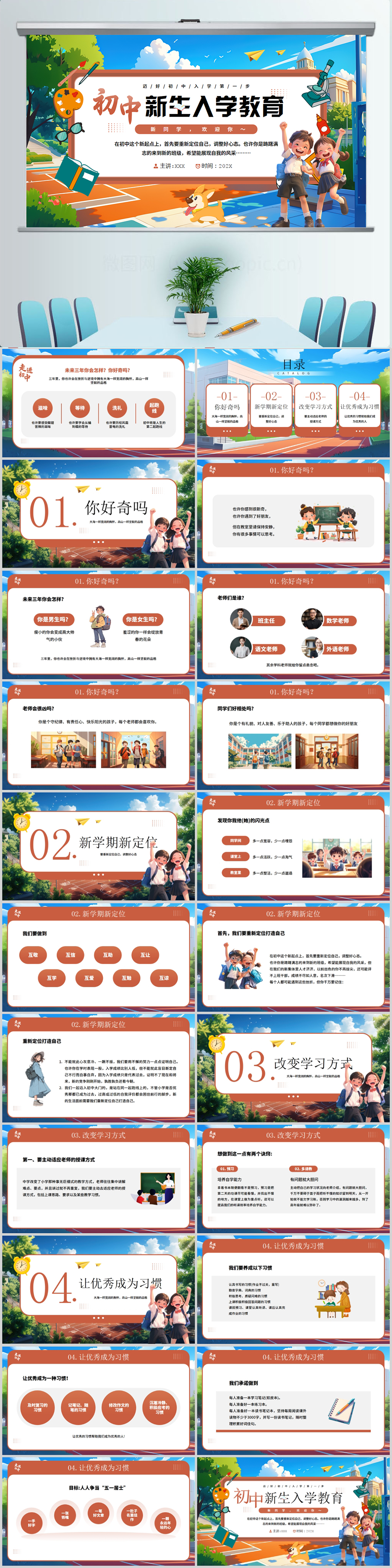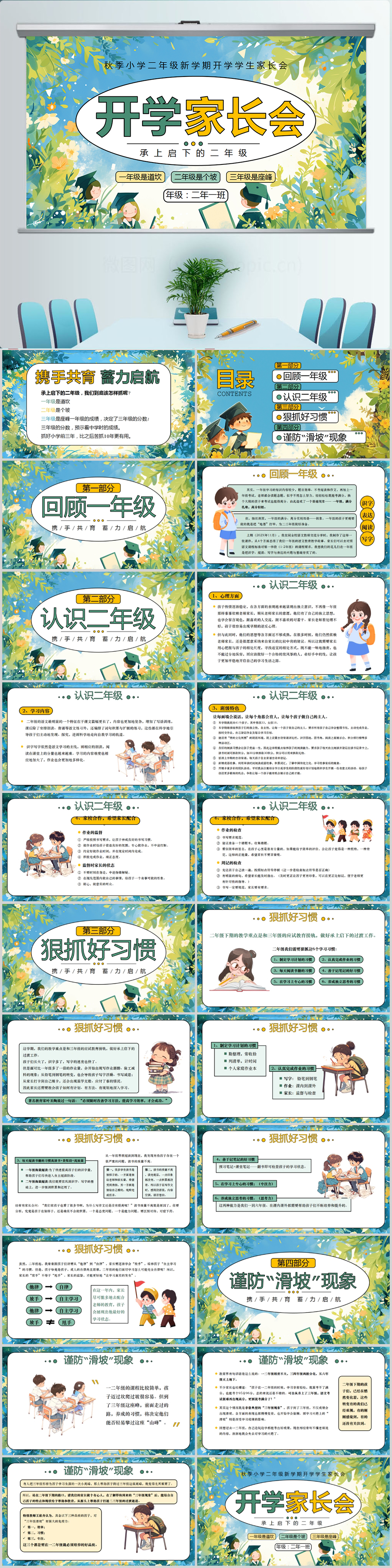 卡通开学第一课小学一年级新生入学培训ppt模板设计