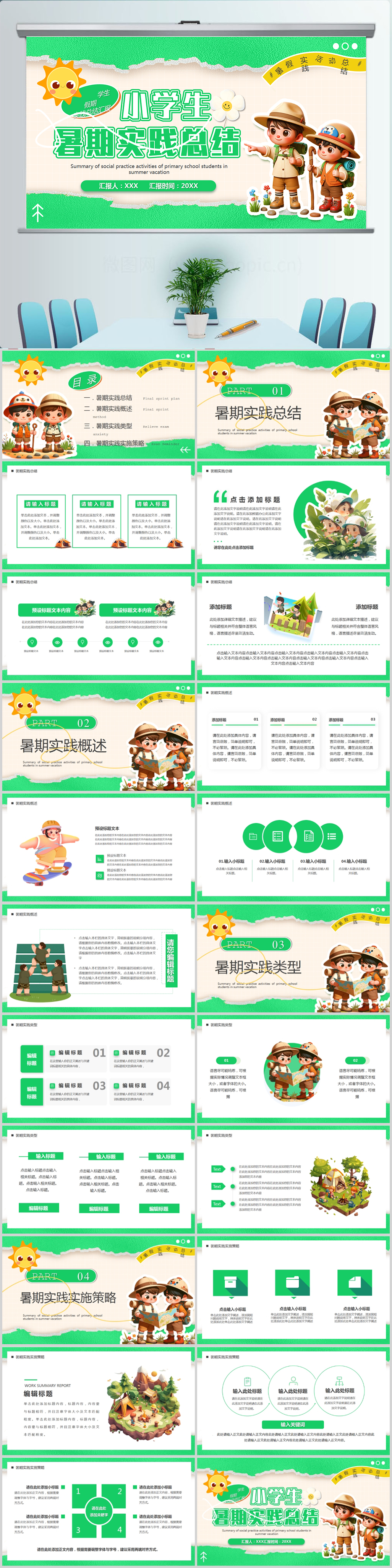 小清新夏日简约风快乐暑期生活PPT模板设计
