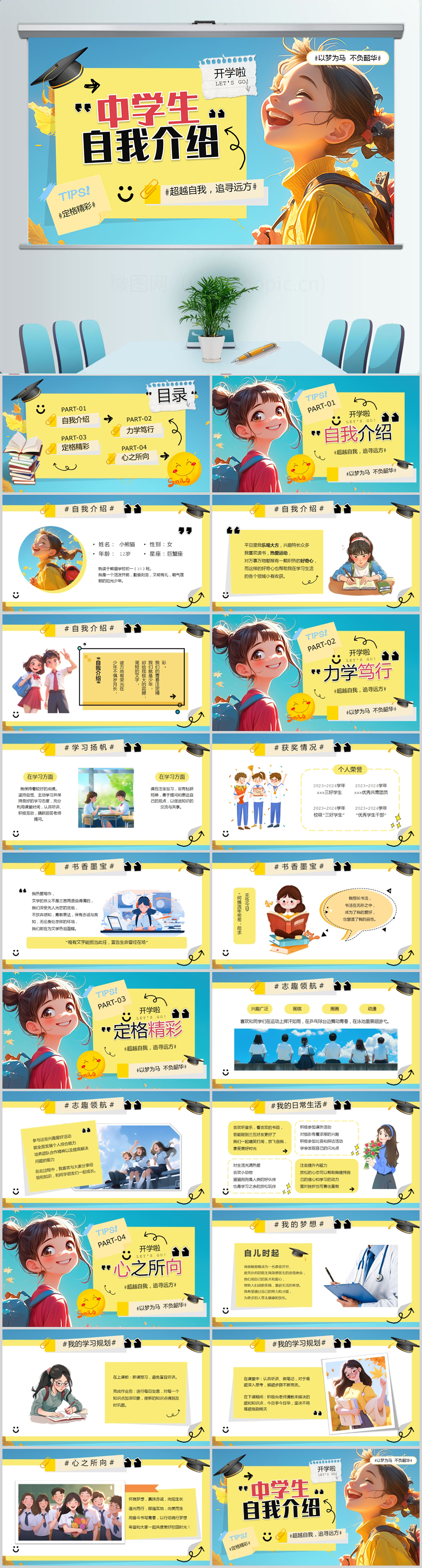 可爱卡通女孩班干部竞选自我介绍ppt模板设计