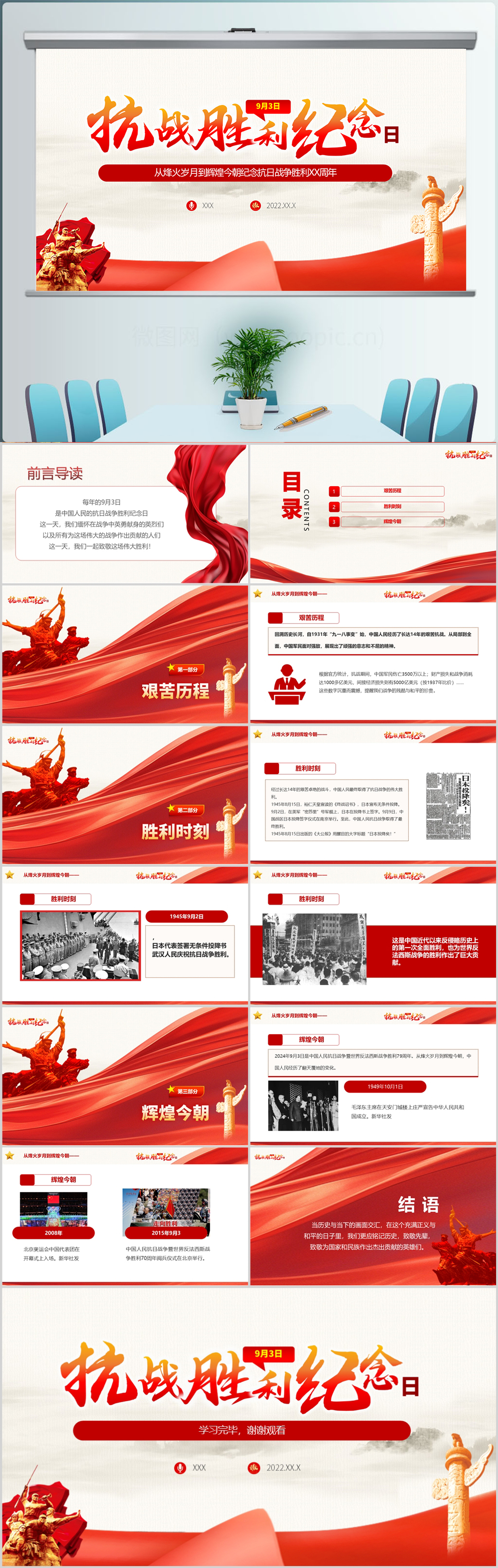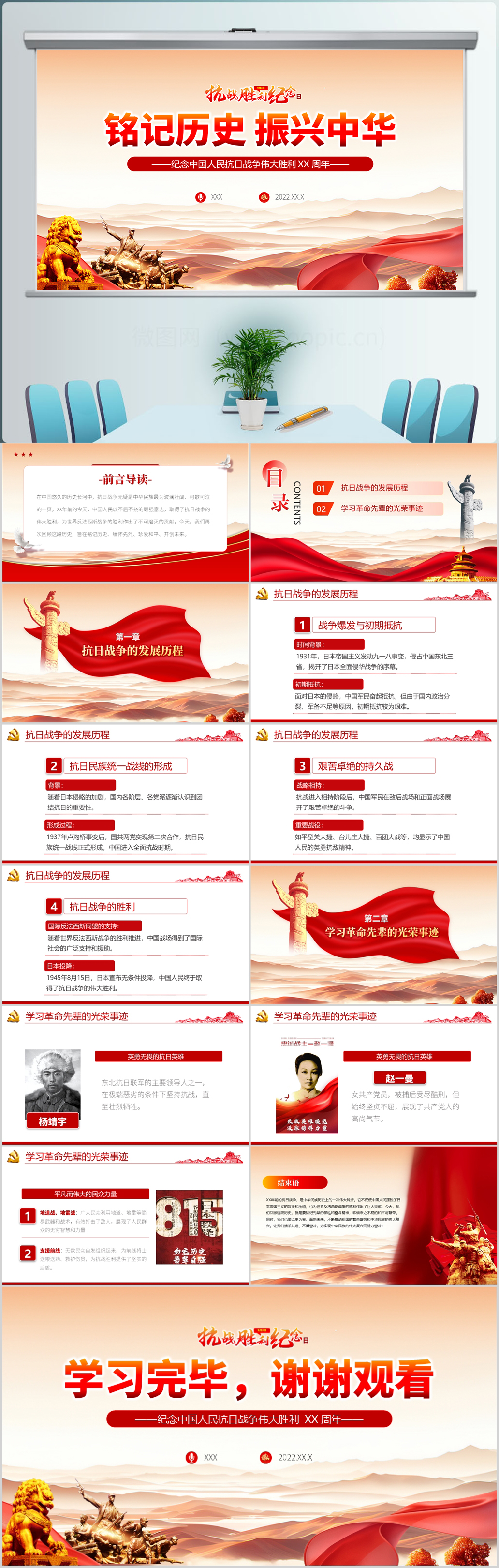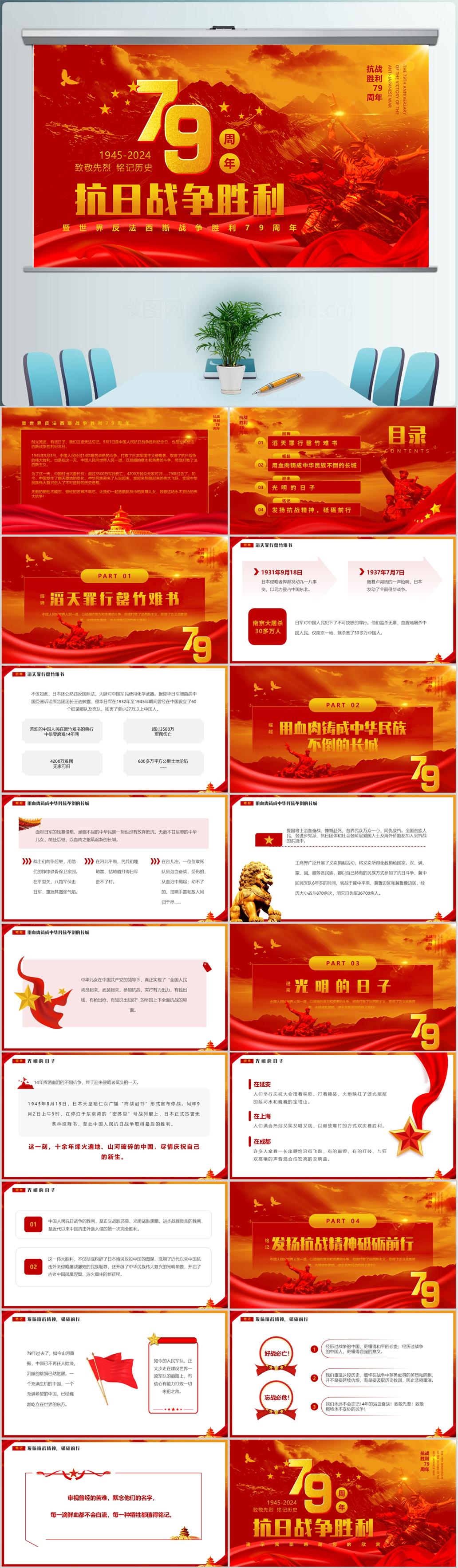 2024铭记历史振兴中华抗日战争伟大胜利79周年纪念日党课PPT模板(内含WORD演讲