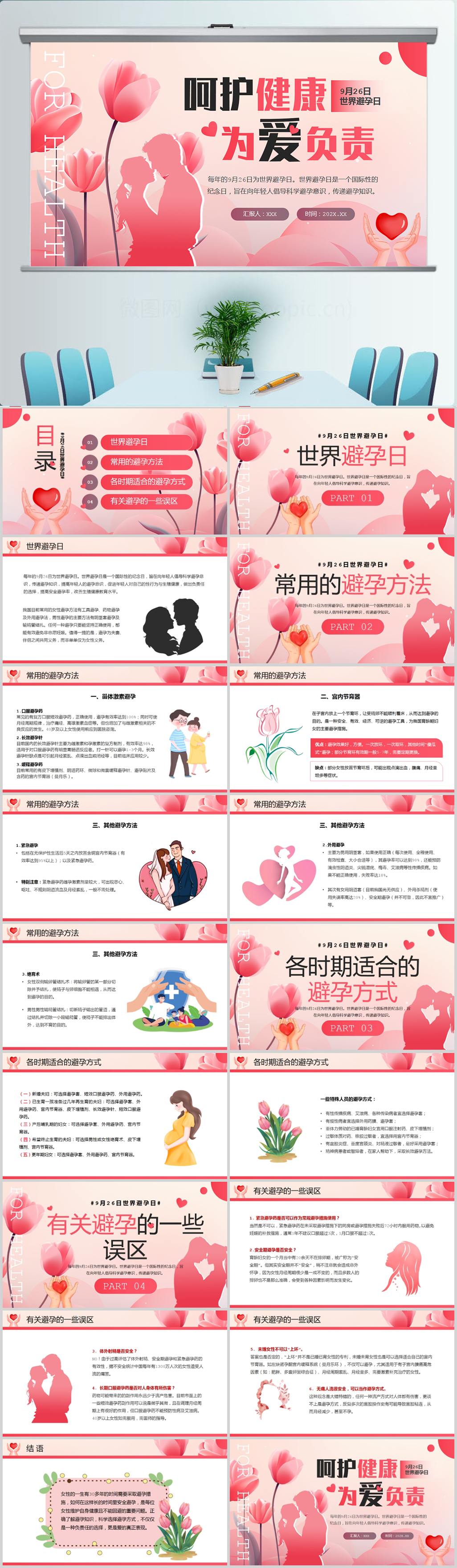 粉色清新世界避孕日介绍PPT模板设计