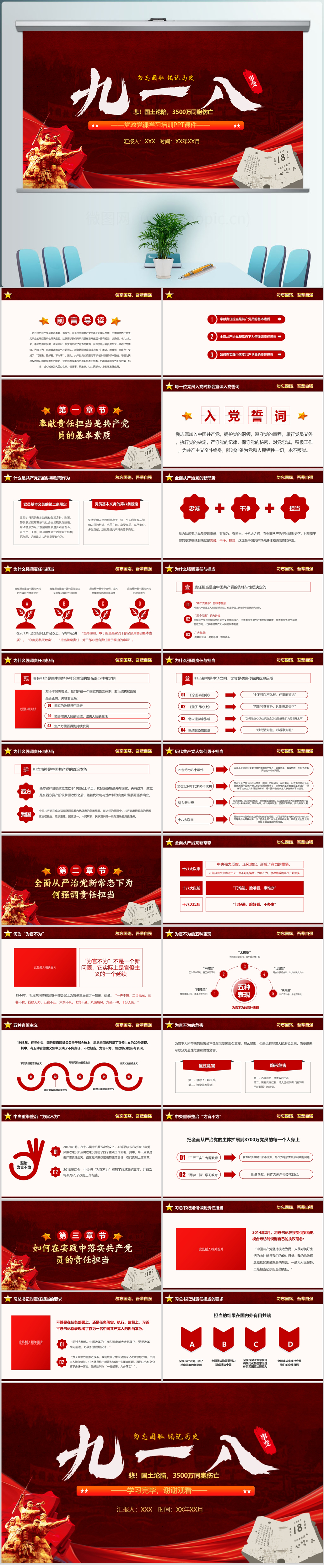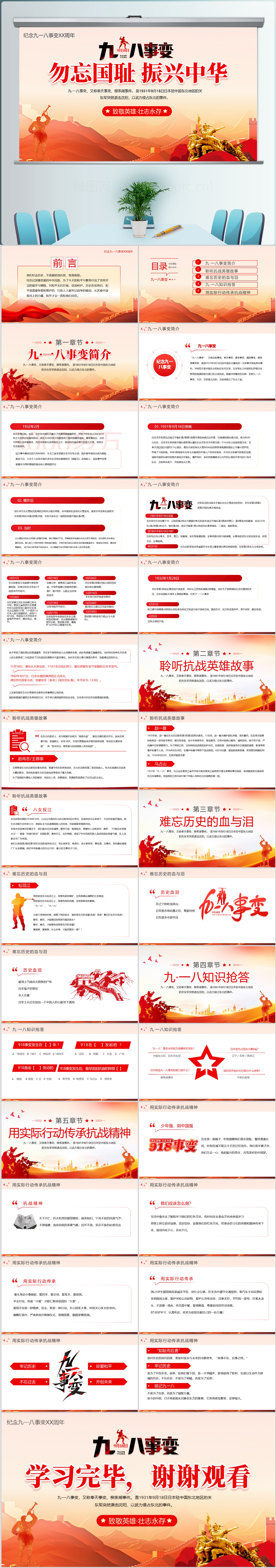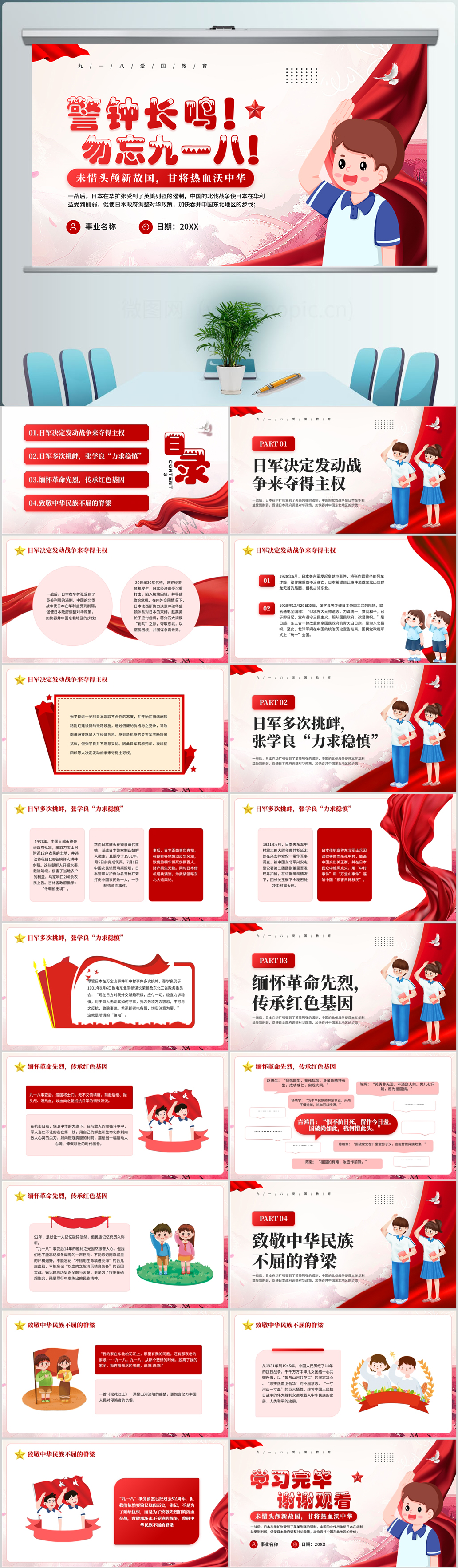 2024红色大气铭记历史九一八事变纪念日党课ppt模板