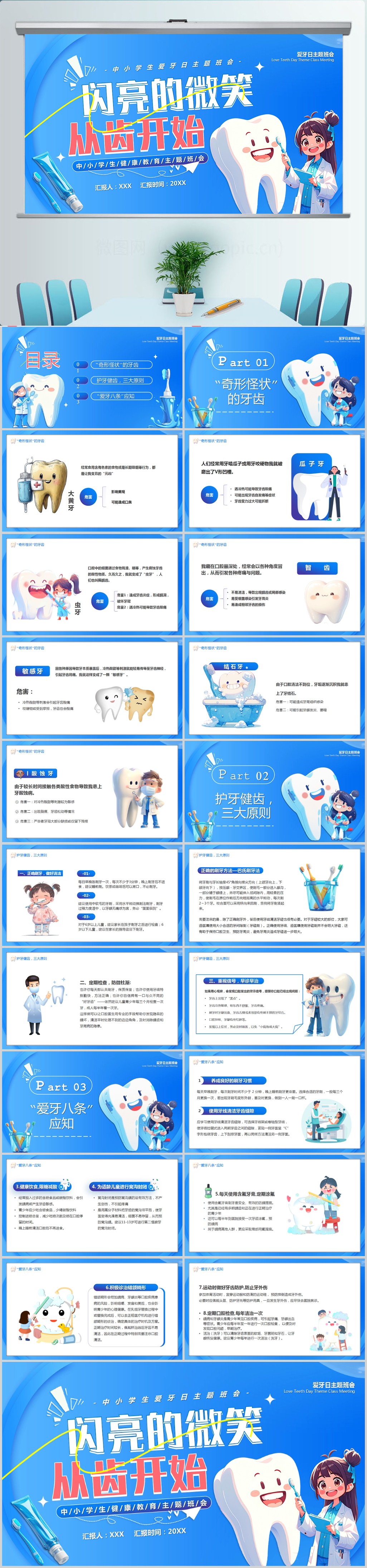 卡通全国爱牙日主题班会PPT模板设计