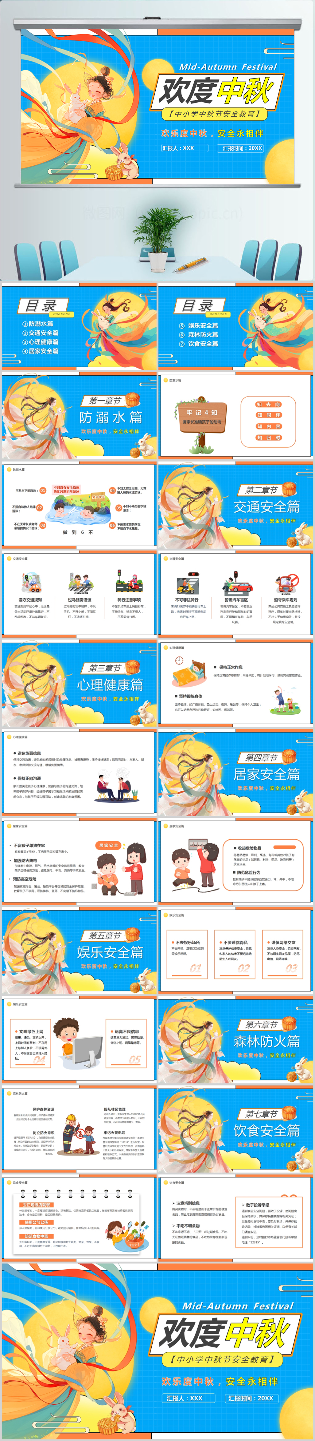 中秋安全教育主题班会PPT模板设计