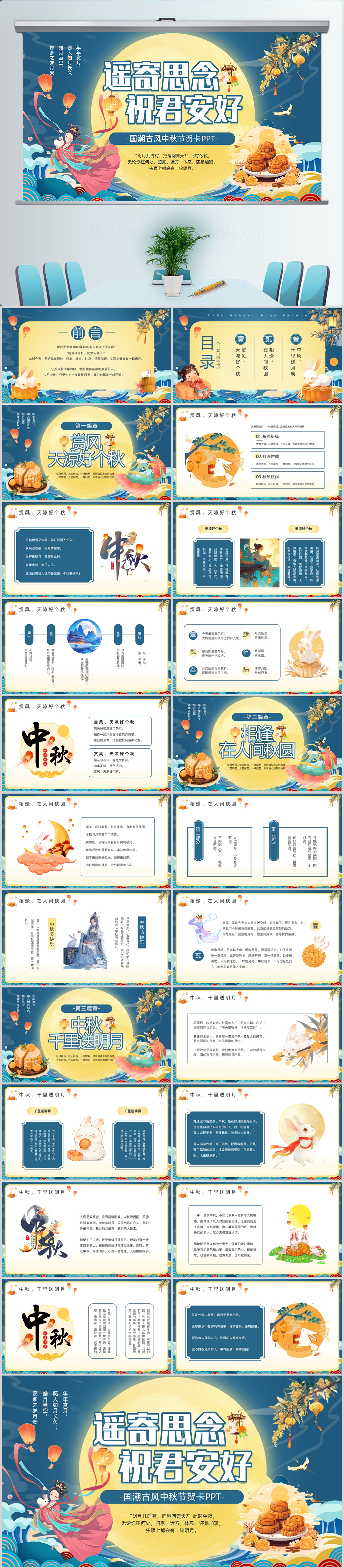 国潮古风中秋节贺卡PPT模板设计