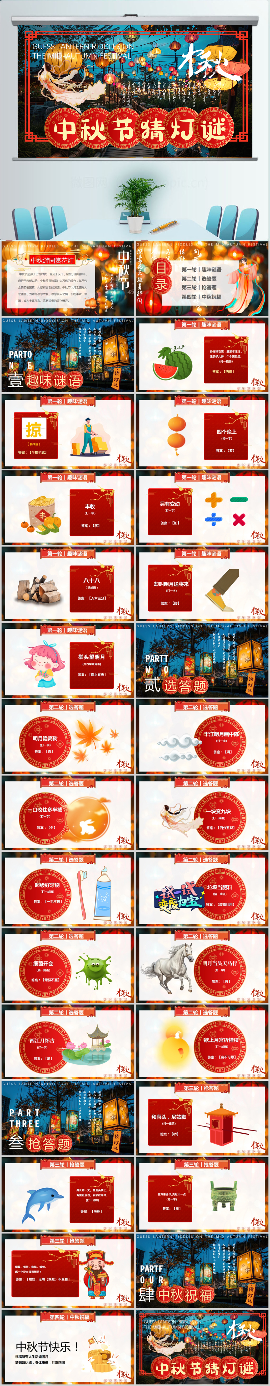 传统中国风中秋节猜灯谜PPT模版设计