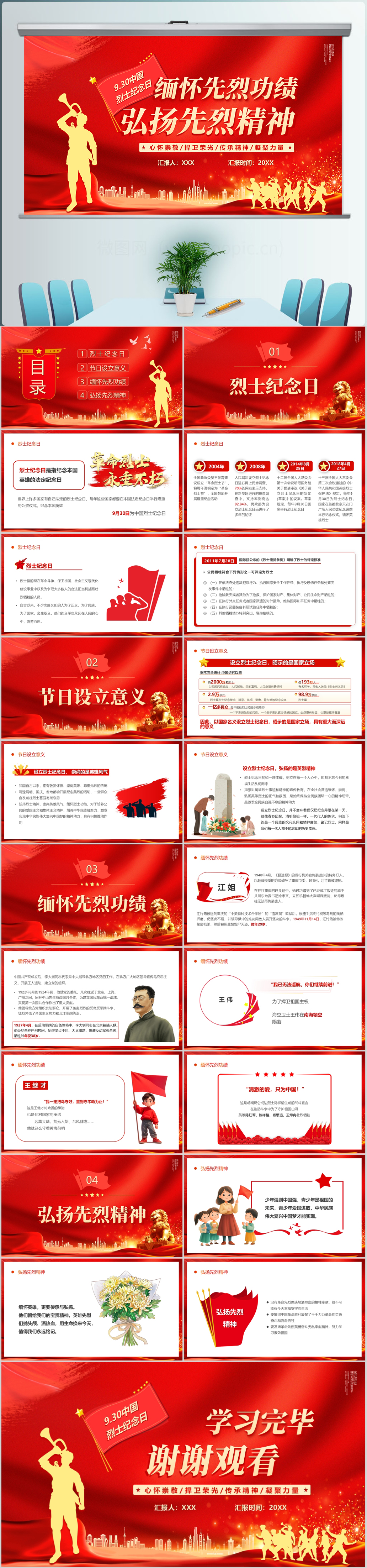 学习9.30烈士纪念日缅怀先烈功绩弘扬先烈精神党课ppt模板
