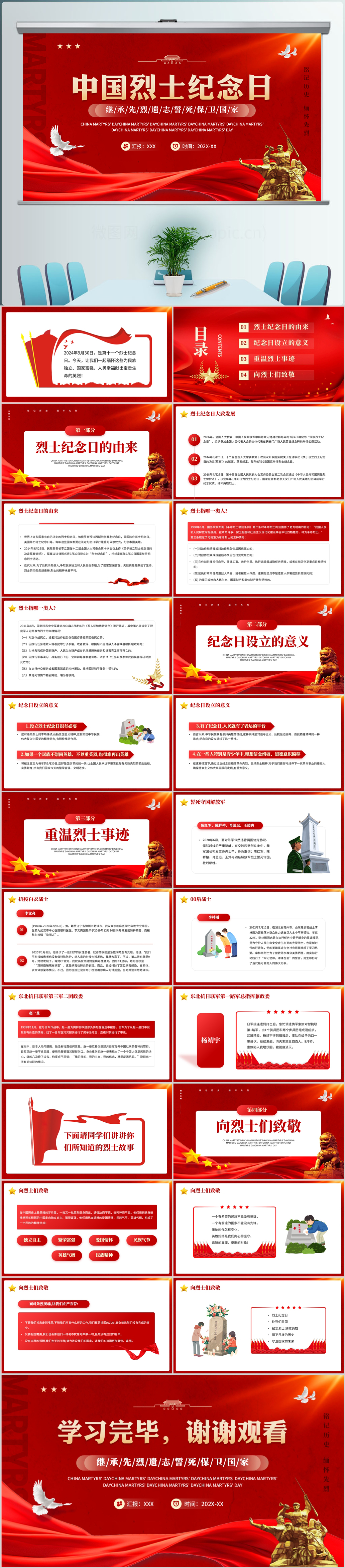 红色中国烈士纪念日主题介绍党课ppt模板