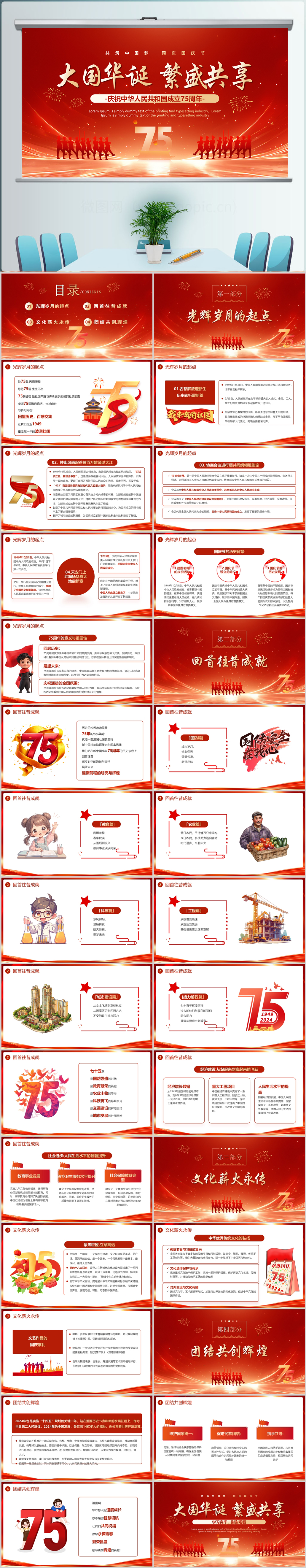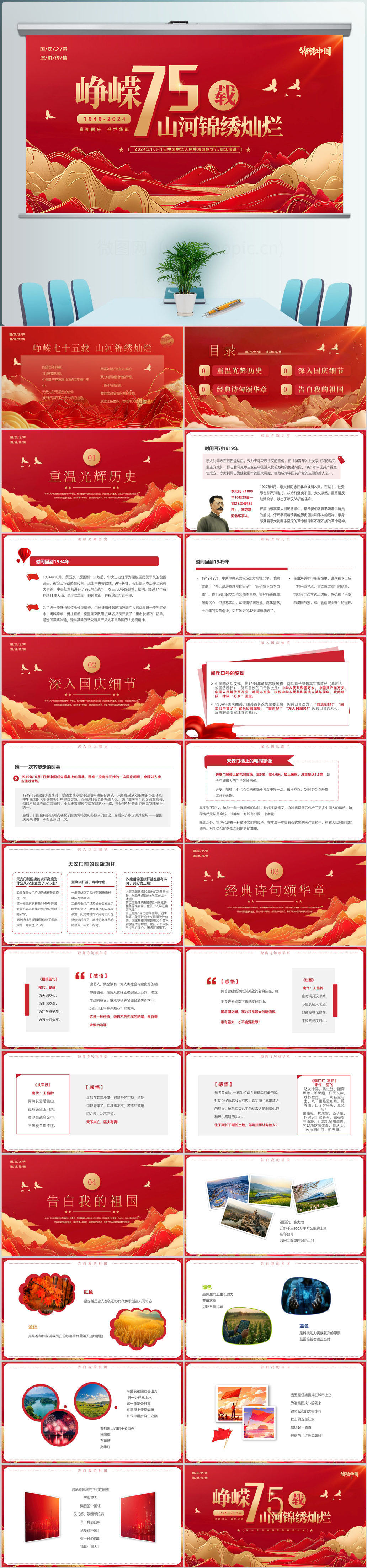 2024红色庆祝新中国成立75周年大国华诞国庆节ppt模板