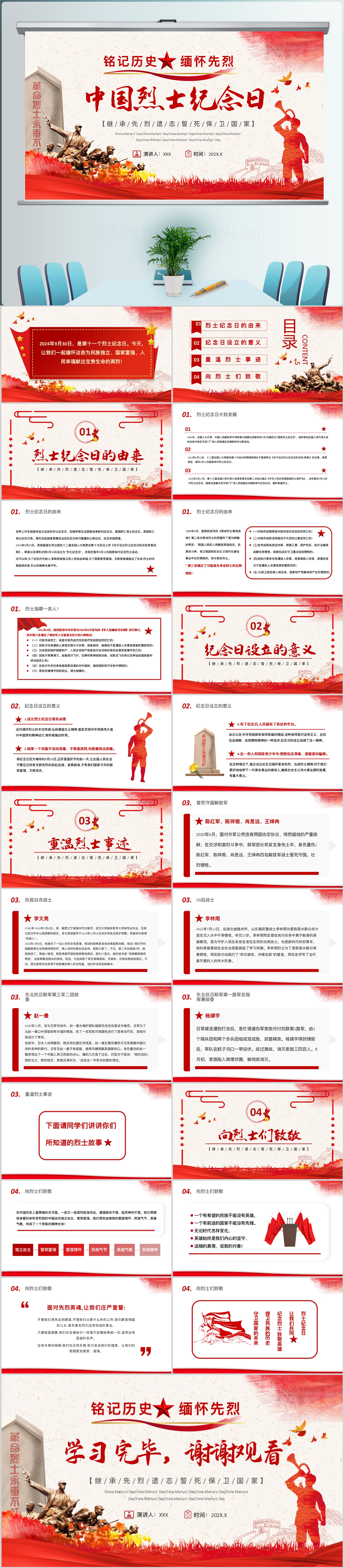 2024简约党政风中国烈士纪念日介绍党课PPT模板