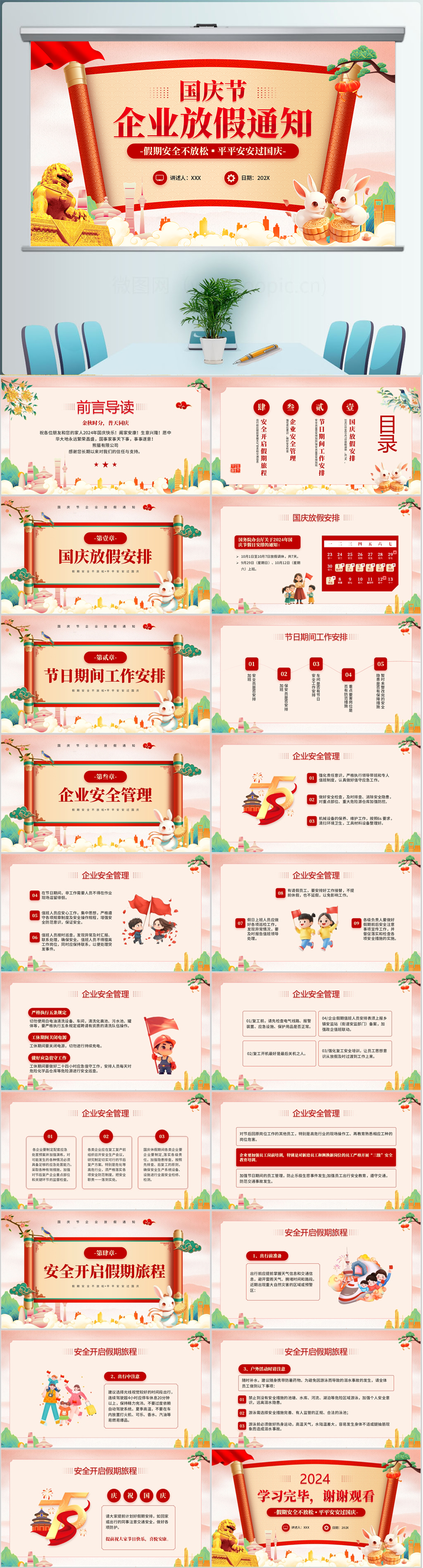 2024中国风国庆节企业放假通知通用PPT模板