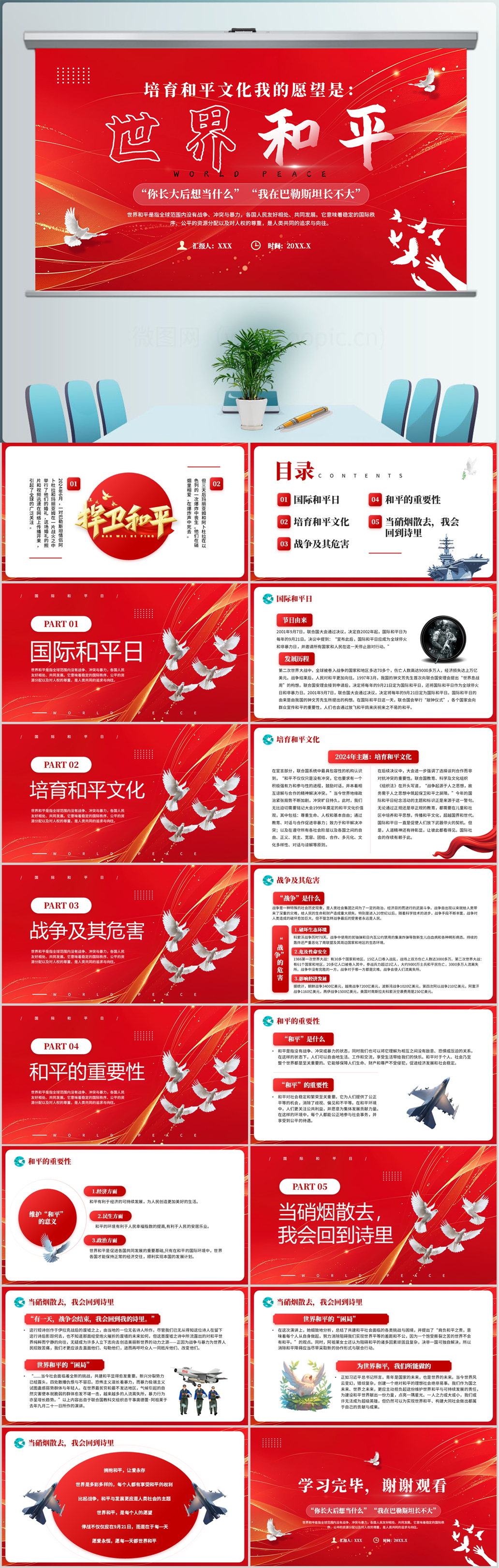 2024红色国际和平日主题介绍ppt模板