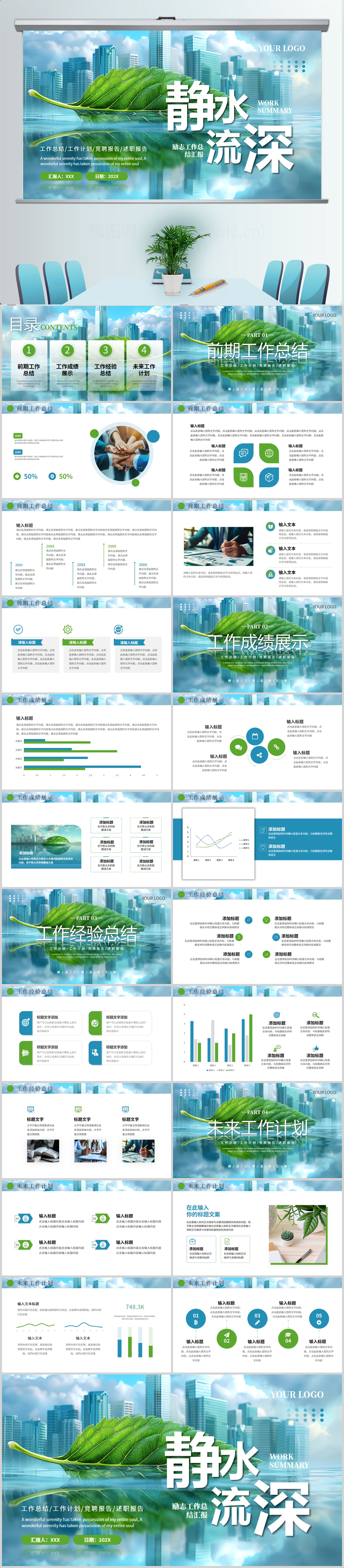 绿色励志简约工作总结汇报PPT模板设计