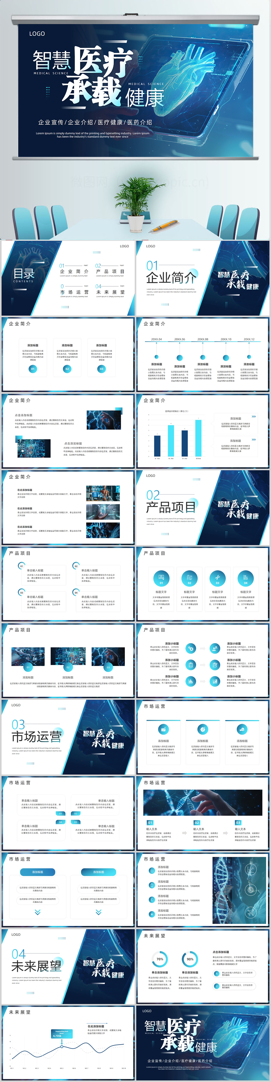 科技蓝几何风医疗医学行业汇报类通用ppt模板设计