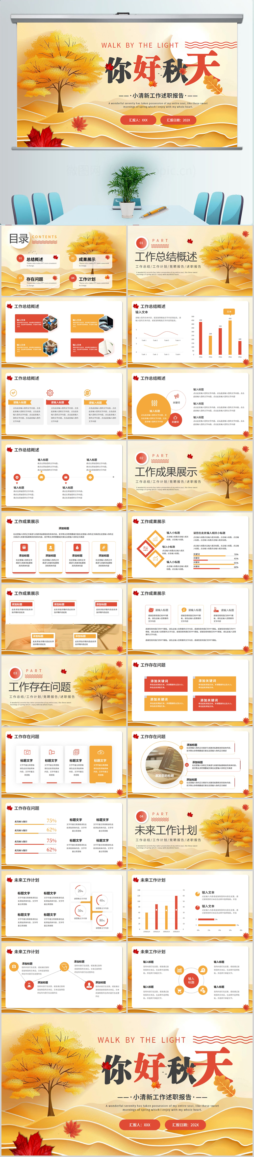 你好秋天秋季工作总结动态PPT模板设计