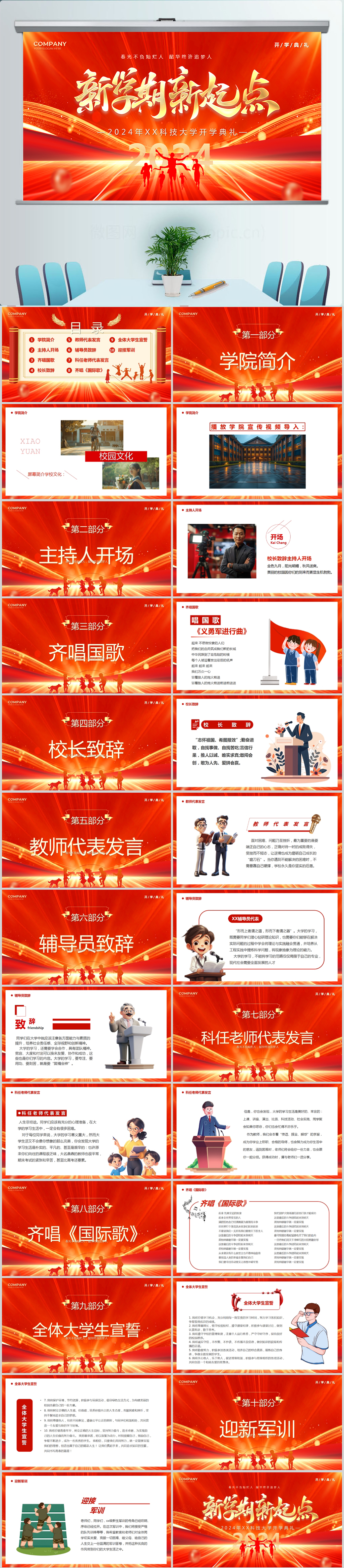 红色创意开学典礼PPT模板设计