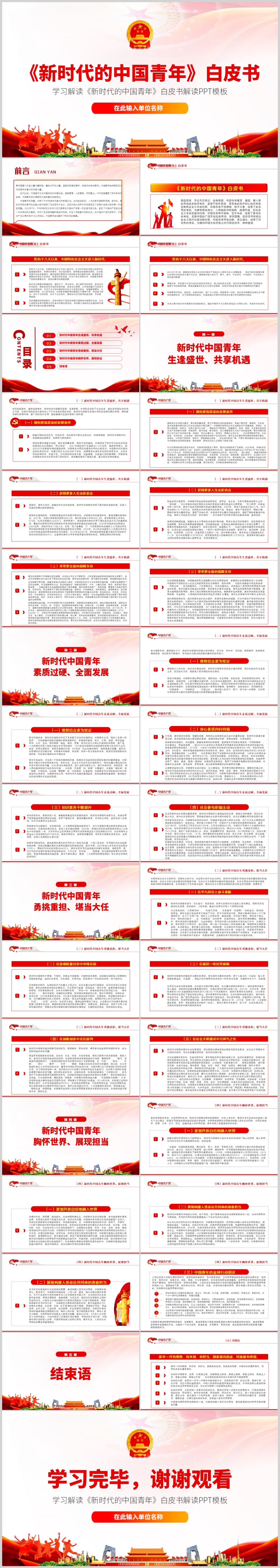 学习解读新时代的中国青年白皮书PPT模板(内含WORD演讲稿)