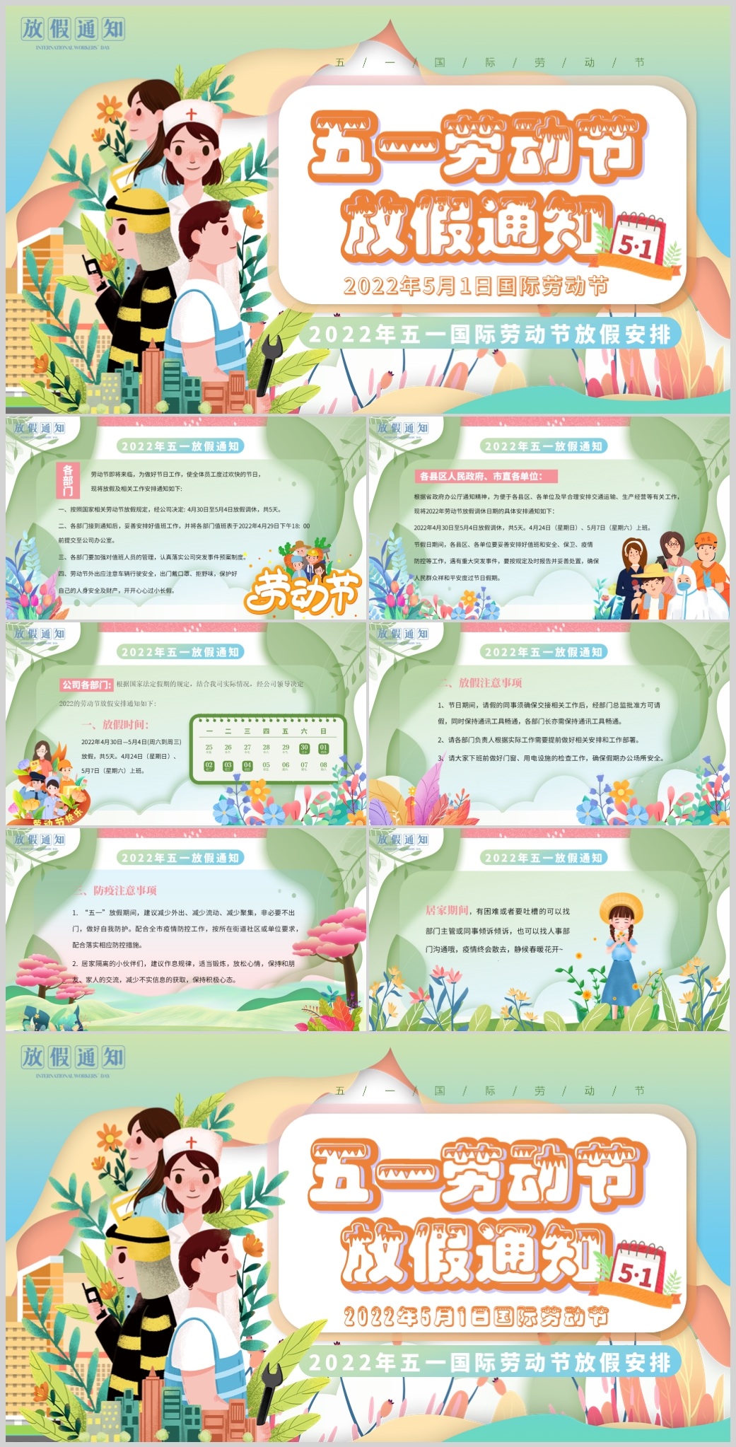 2022年五一国际劳动节放假安排通知PPT模板