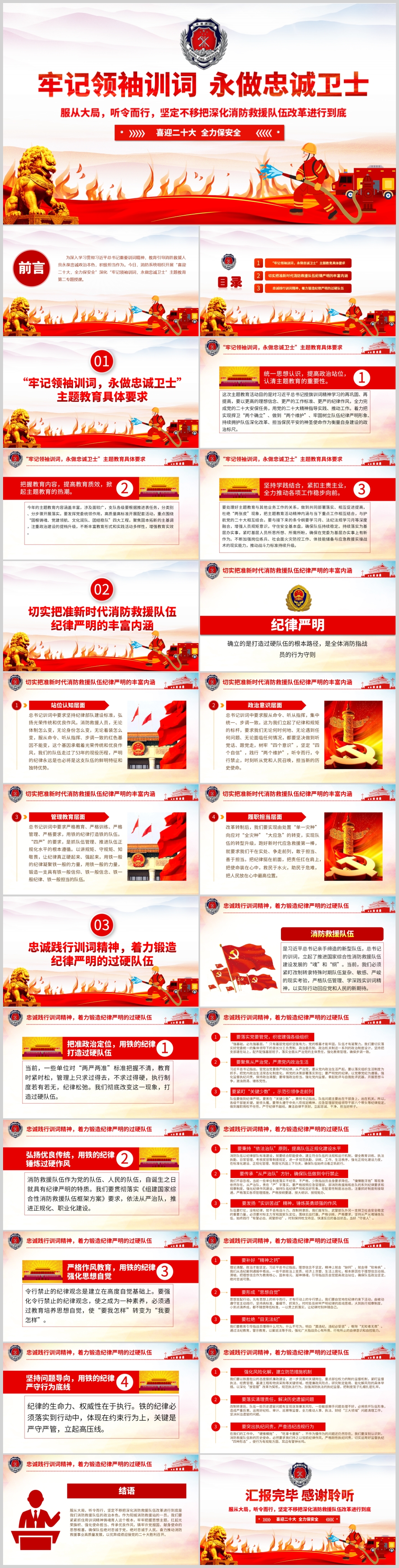 喜迎二十大忠诚践行训词精神深化消防救援队伍转特党课PPT模板