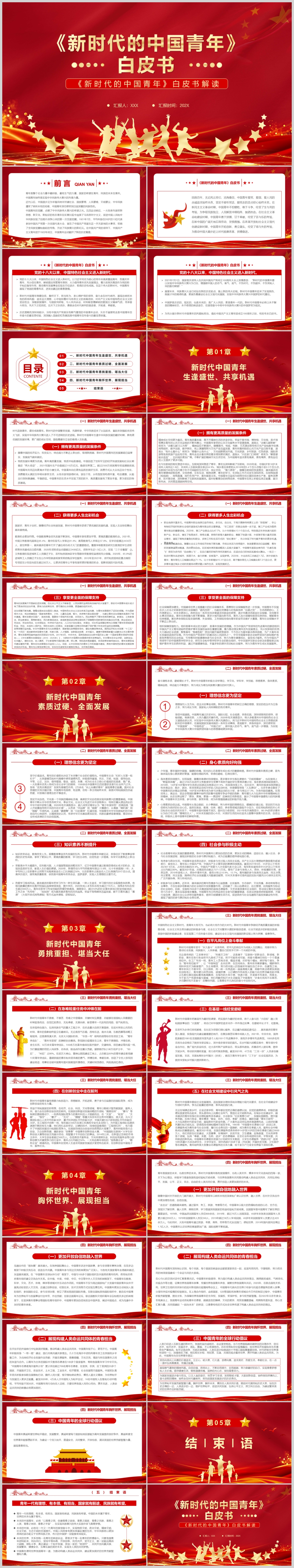 2022年新时代的中国青年白皮书解读PPT模板(内含WORD演讲稿)