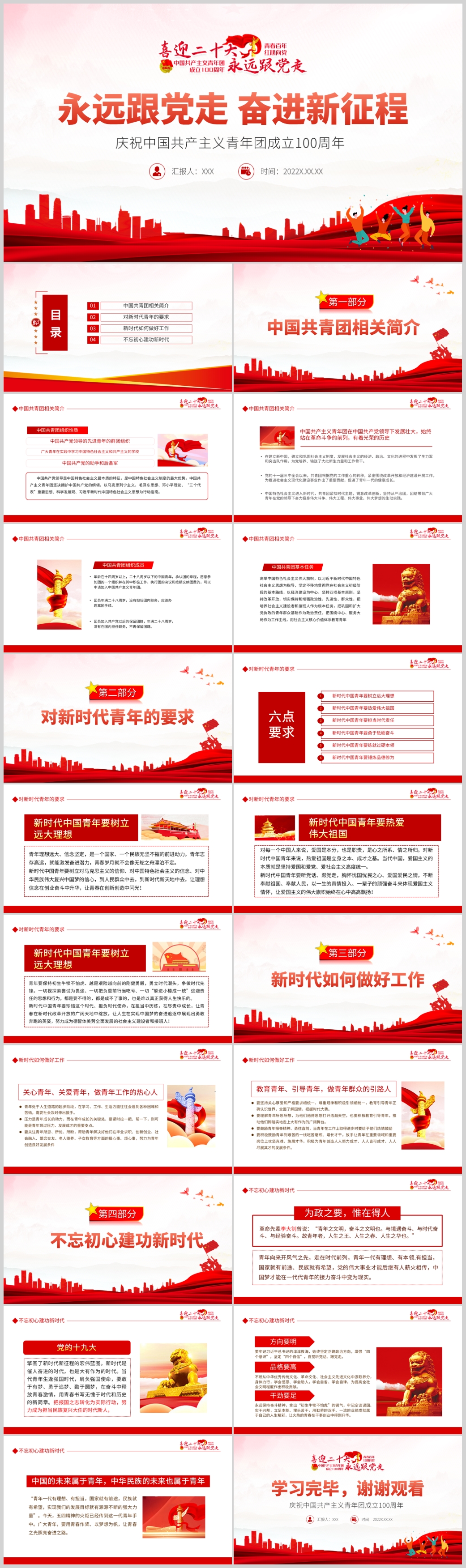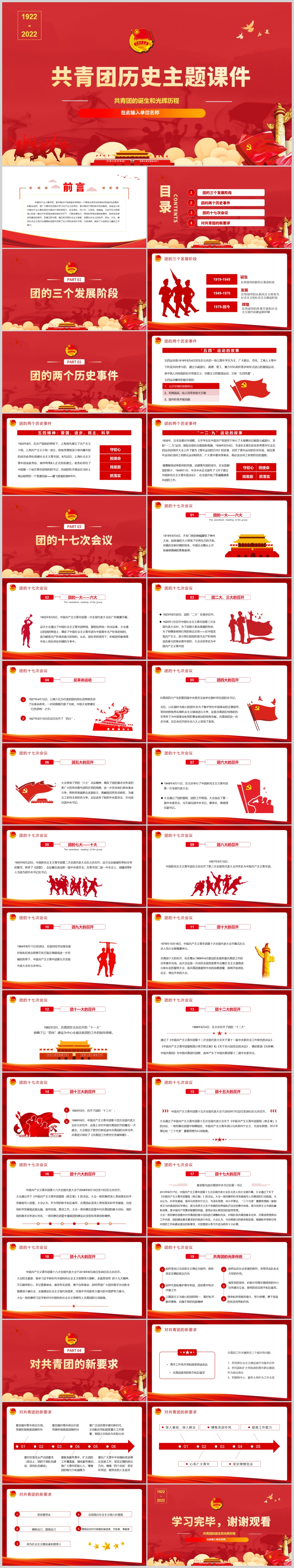 2022年建团一百周年共青团历史弘扬五四青年精神课件PPT模板