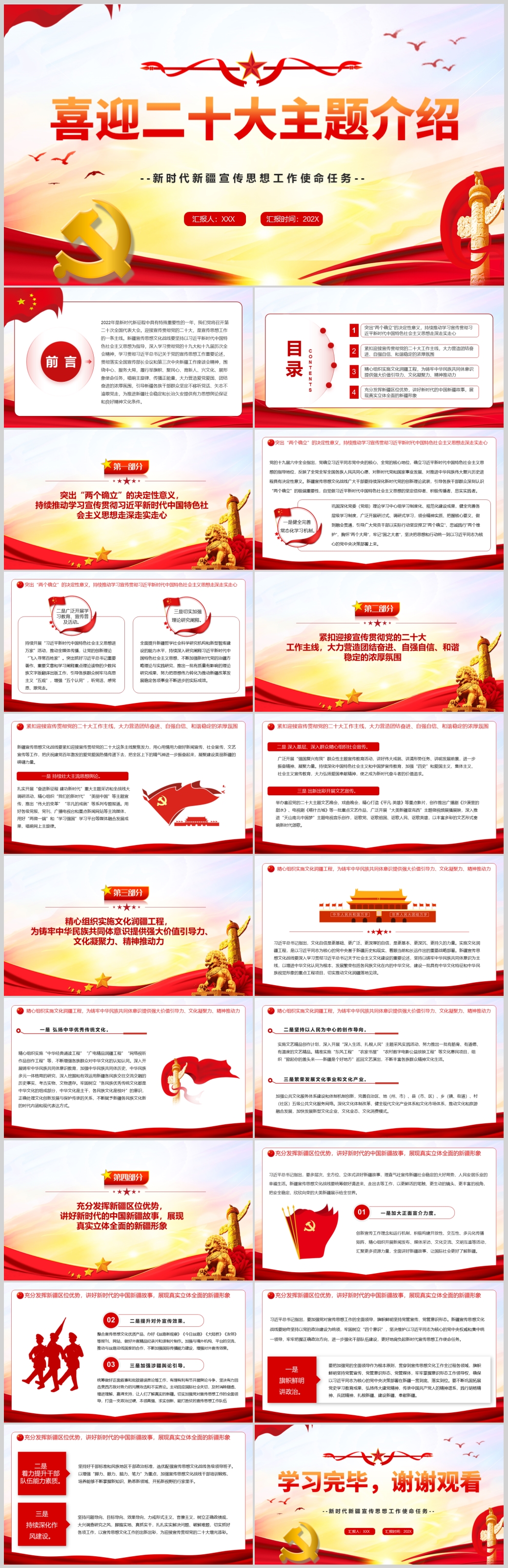 喜迎二十大主题介绍新疆宣传思想工作使命任务党课PPT模板(内含WORD演讲稿)