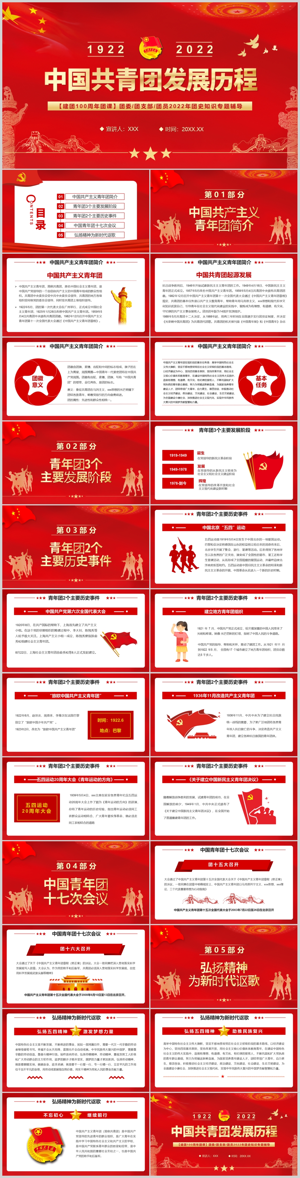 1922-2023年弘扬五四青年中国共青团发展历程主题团课PPT模板