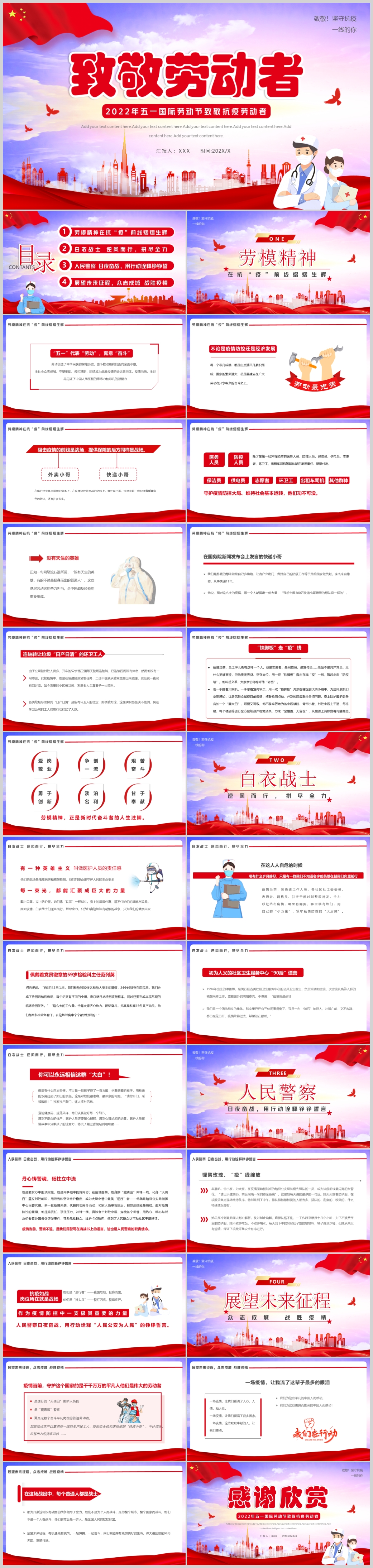 奋进新征程致敬劳动者五一国际劳动节致敬抗疫劳动者PPT模板