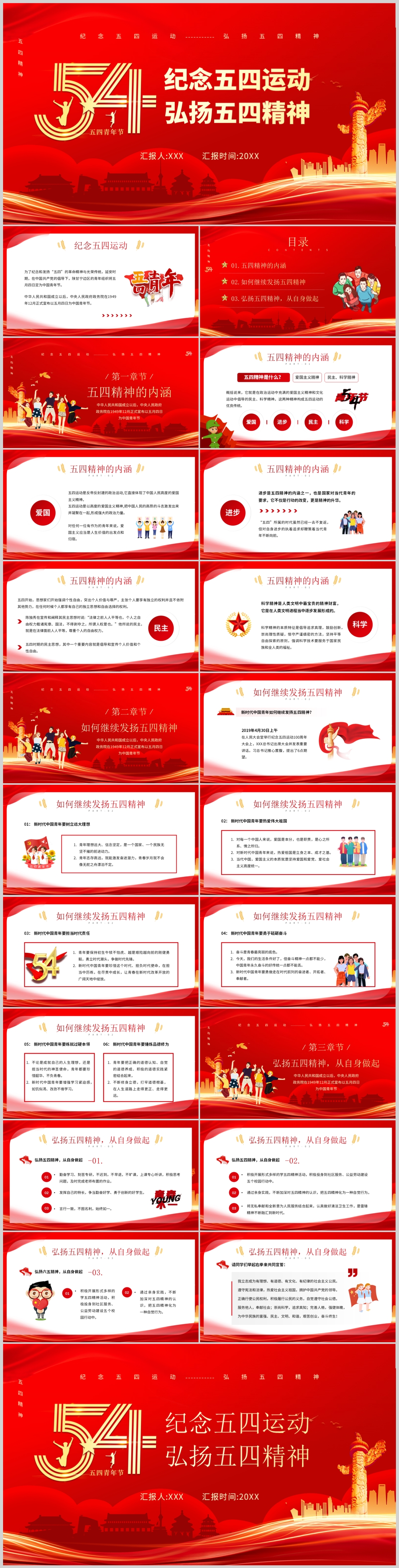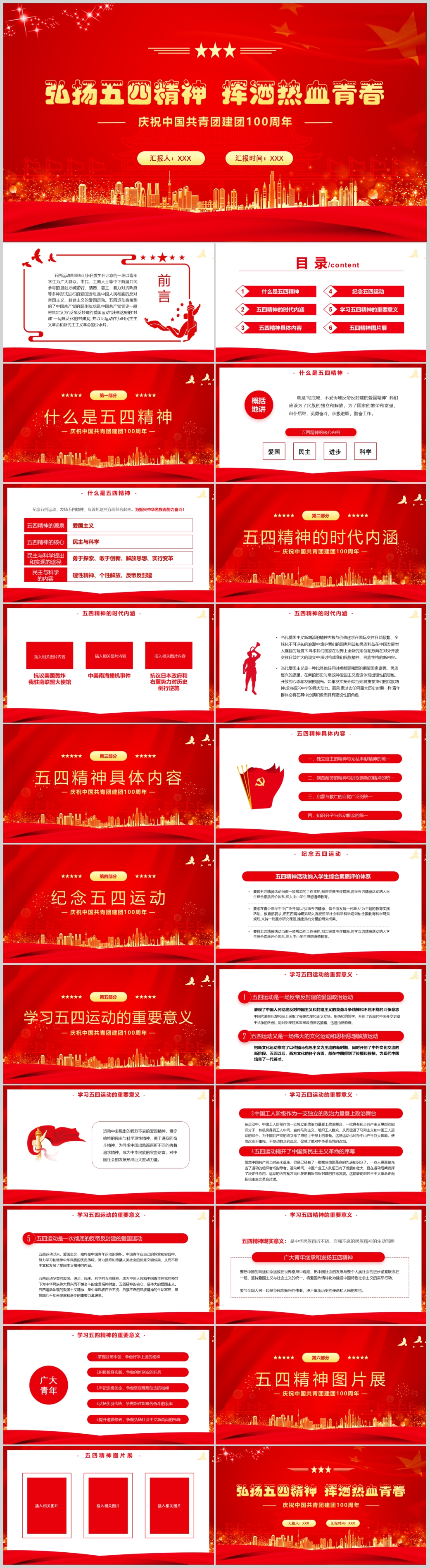 2023红色建团一百周年纪念五四运动104周年五四精神PPT模板