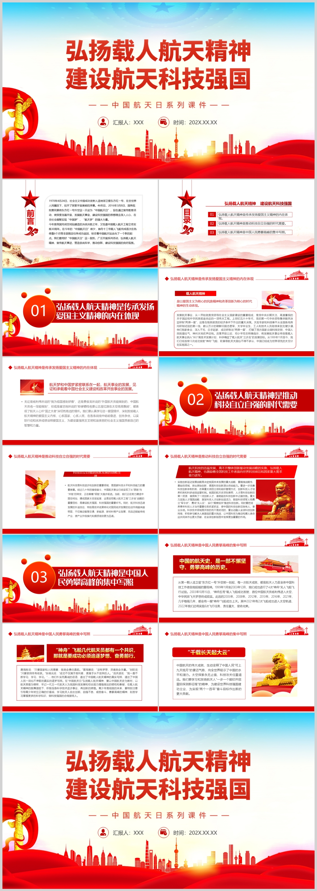 弘扬载人航天精神建设航天科技强国航天精神主题课件PPT模板(内含WORD演讲稿