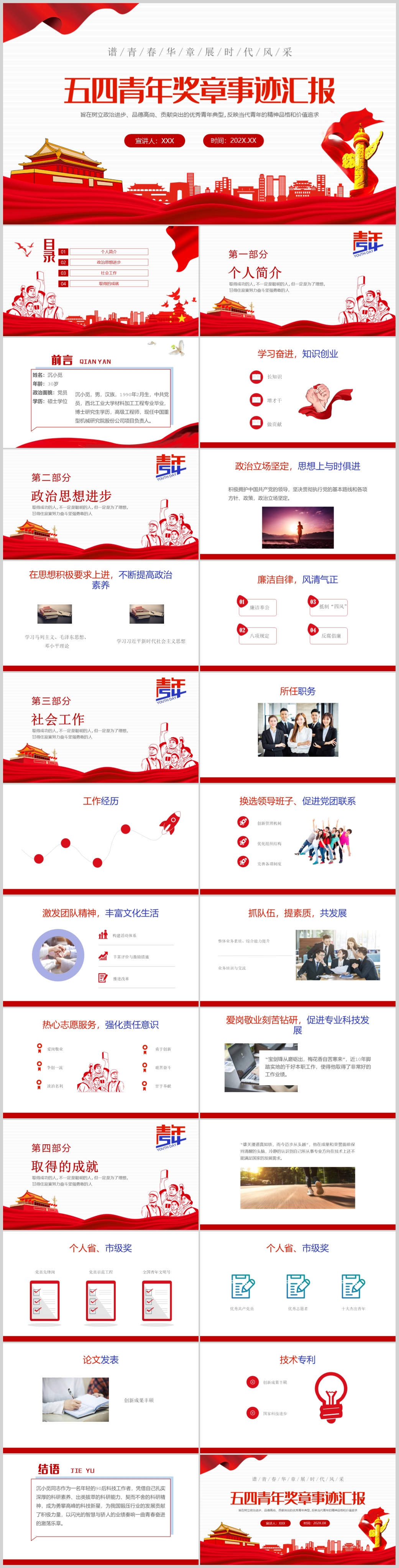 五四青年奖章事迹汇报建团一百周年弘扬五四精神PPT模板