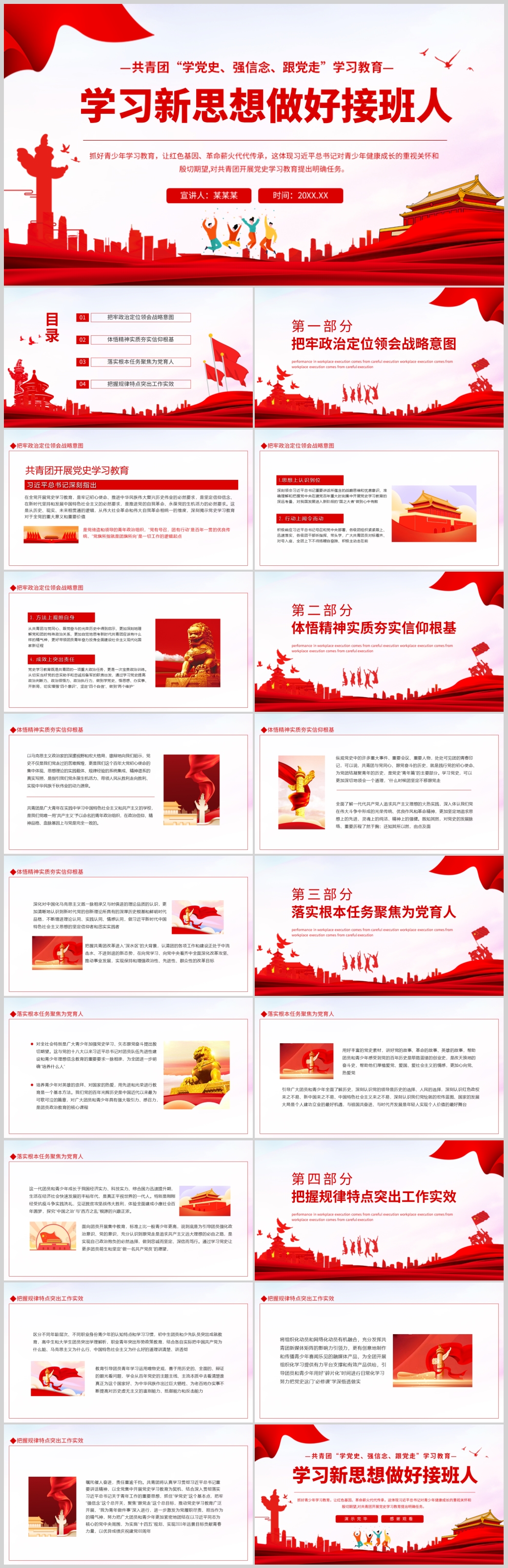 2022共青团一百周年学党史强信念跟党走做新时代接班人PPT模板