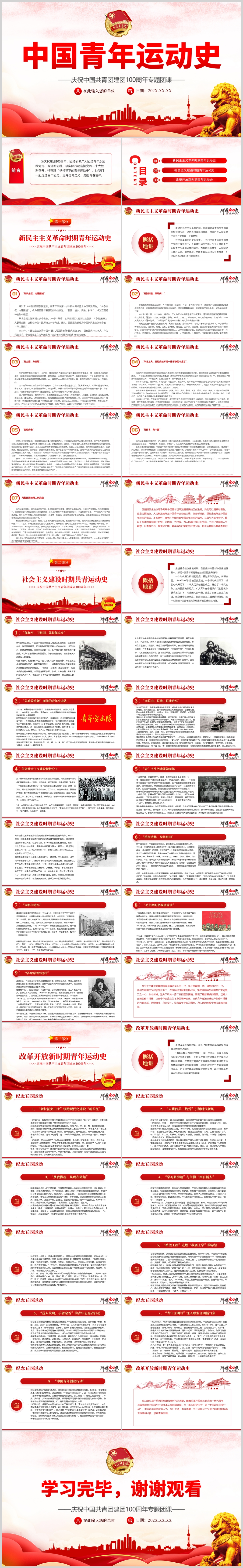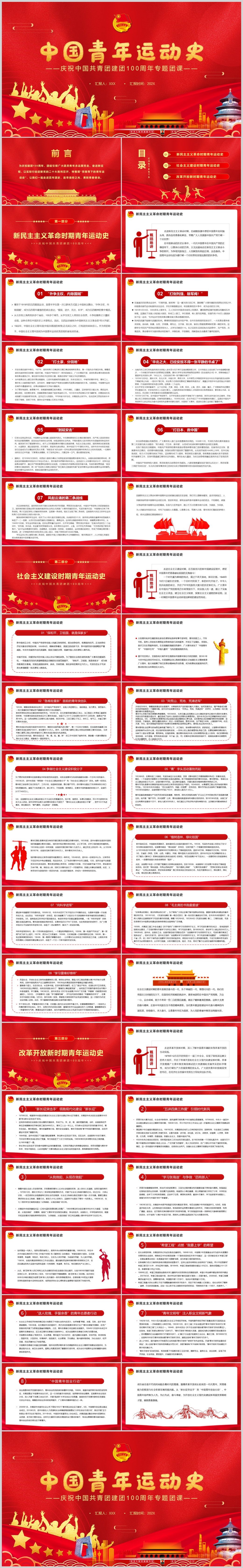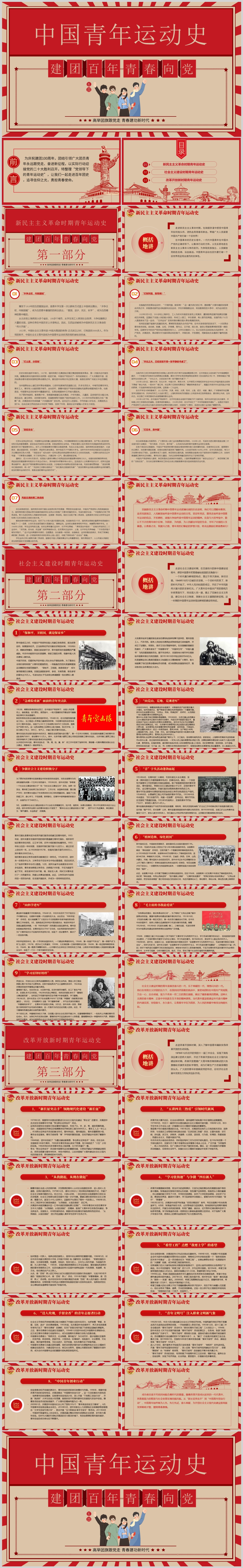 中国青年运动史共青团建团100周年专题团课PPT模板(内含QWORD演讲稿)