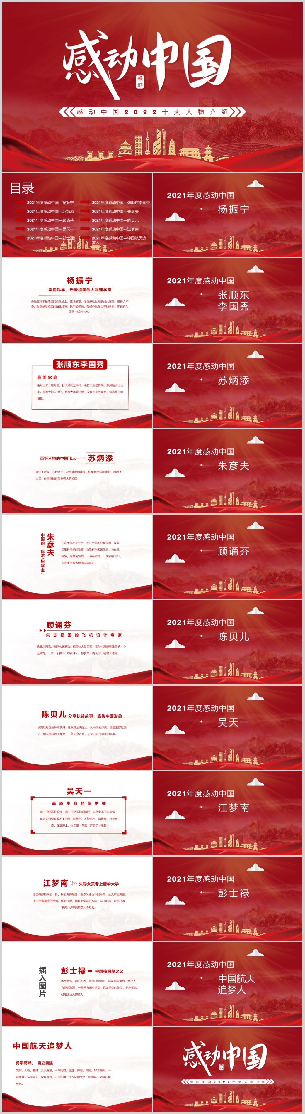 红色2022十大人物介绍感动中国专题课件PPT模板