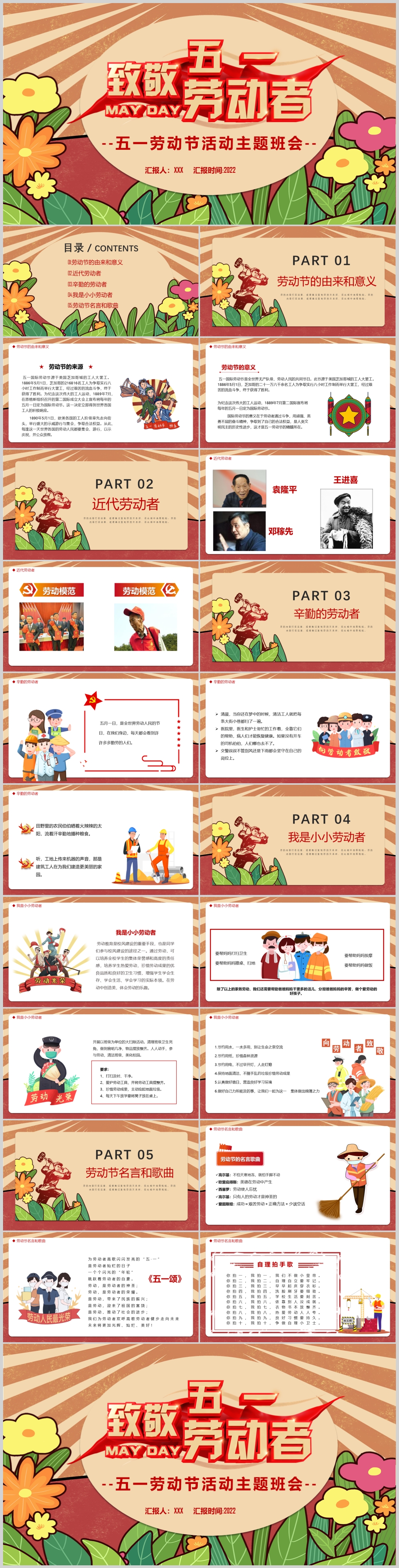 五一PPT劳动节班会劳动光荣工会弘扬劳模精神PPT模板