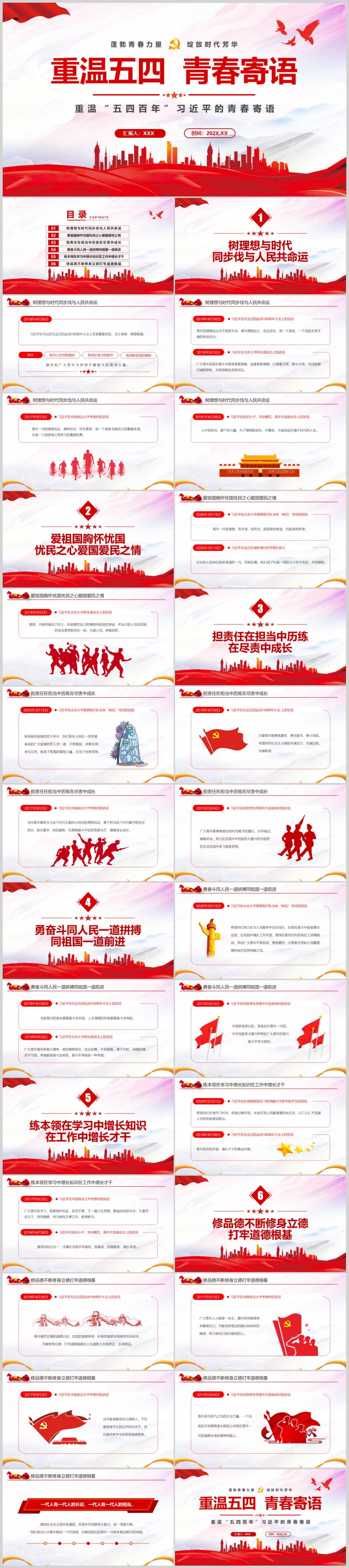 中国青年运动史建团百年弘扬五四精神专题团课PPT模板(内含WORD演讲稿)
