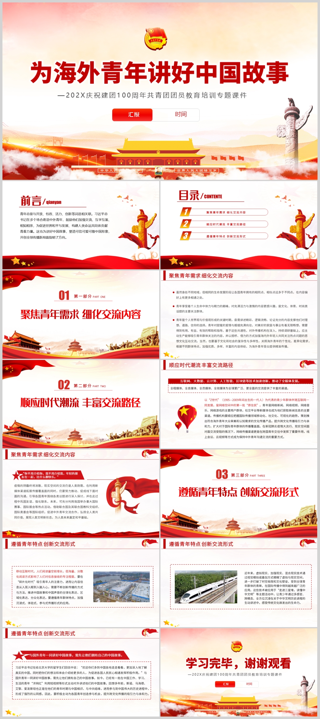 为海外青年讲好中国故事共青团团员教育培训PPT模板(内含WORD演讲稿)