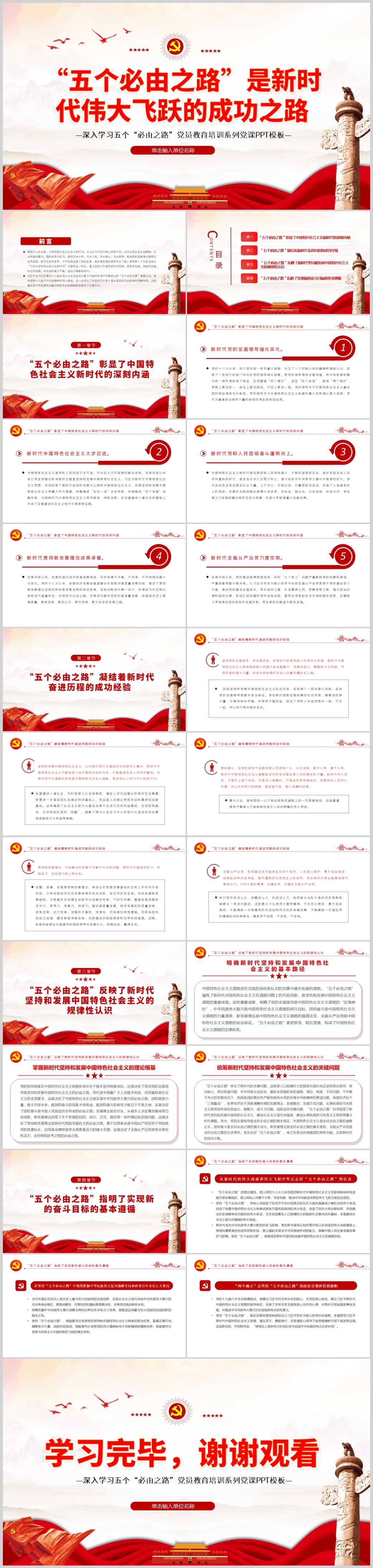 深入学习五个“必由之路”系列党课课件PPT模板(内含WORD演讲稿)