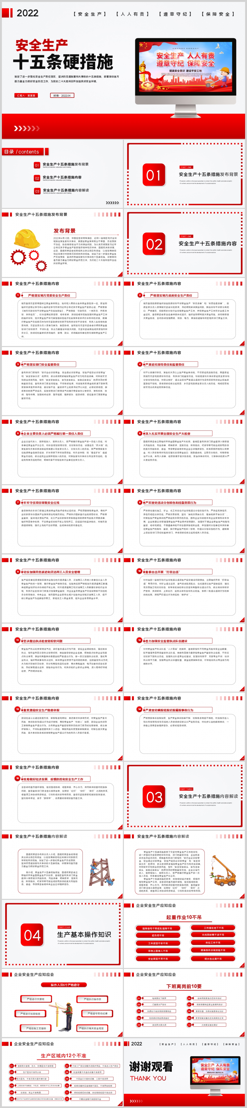 2022年安全生产十五条硬措施安全生产月主题课件PPT模板(内含WORD演讲稿)