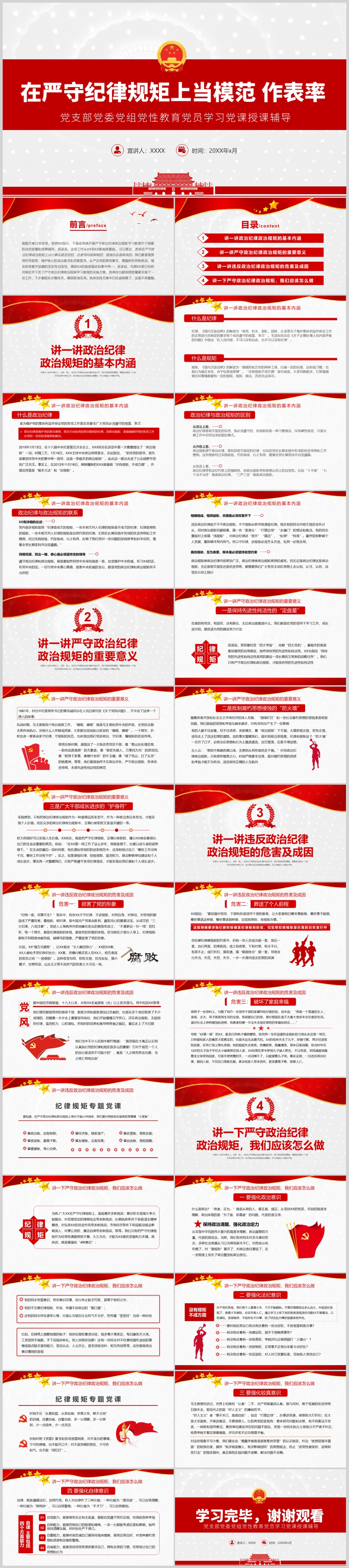 严守纪律规矩上当模范作表率廉政纪律党课PPT模板(内含WORD演讲稿)