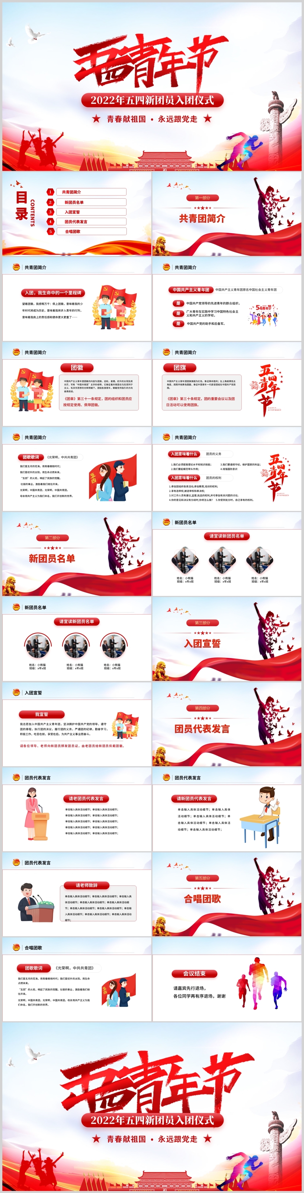 2022年五四青年运动新团员入团仪式专题课件ppt模板