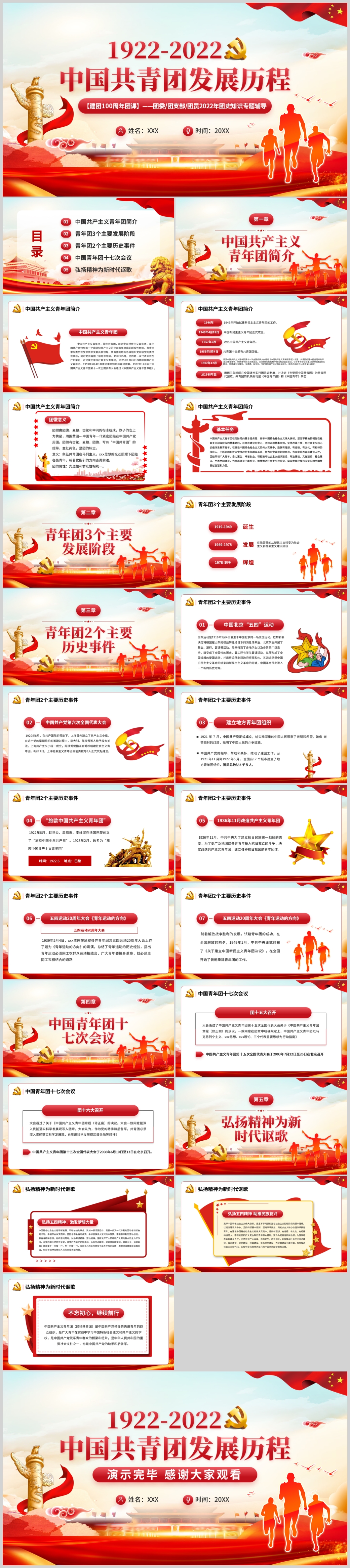 1922-2022共青团一百周年中国青年团发展历程团史ppt模板
