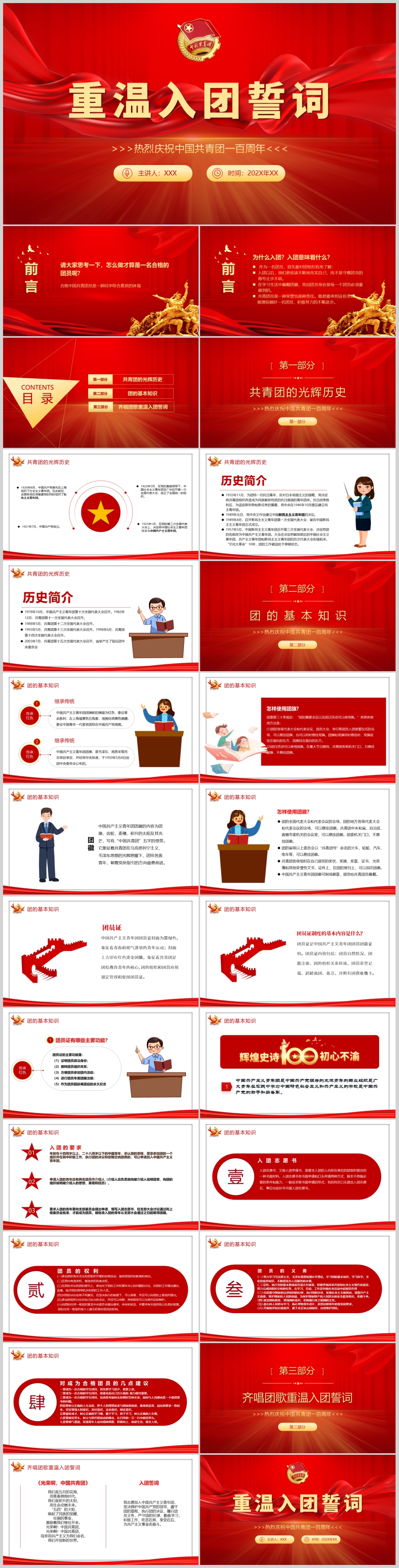 红色2022建团一百周年重温入团誓词团的基本知识课件PPT模板