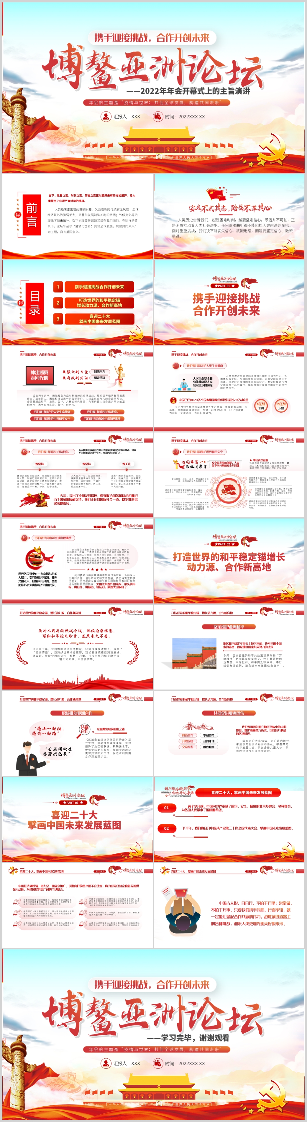 博鳌亚洲论坛2022年年会开幕式上的主旨演讲讲话PPT模板(内含WORD演讲稿)