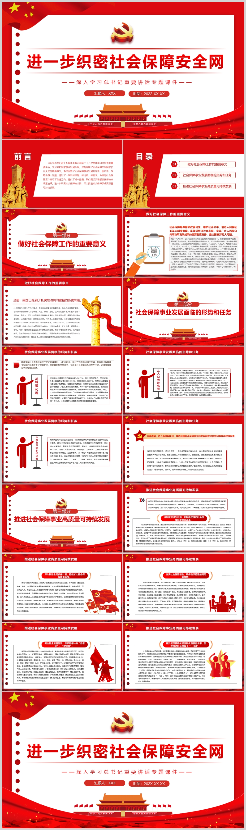 学习推进社会保障事业高质量可持续发展党课PPT模板(内含WORD演讲稿)