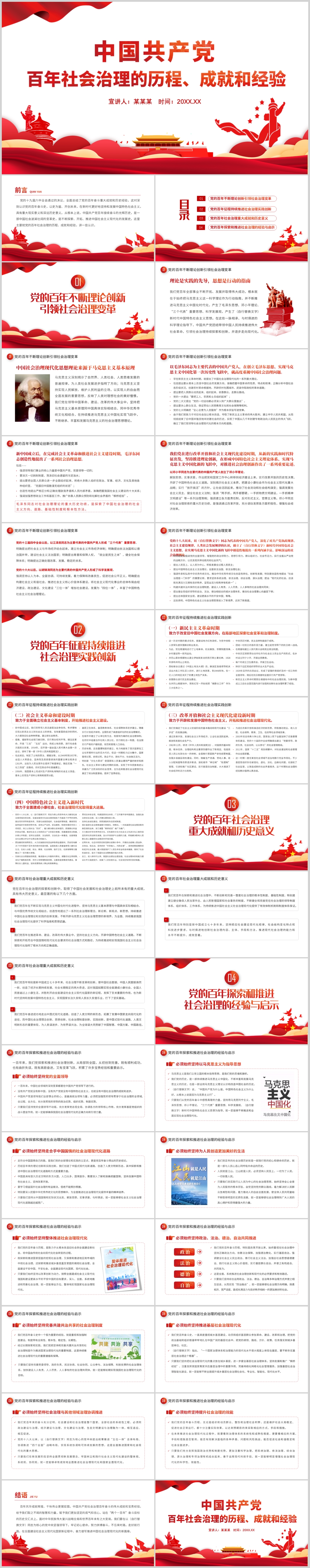 中国共产党百年社会治理的历程、成就和经验专题PPT模板(内含WORD演讲稿)